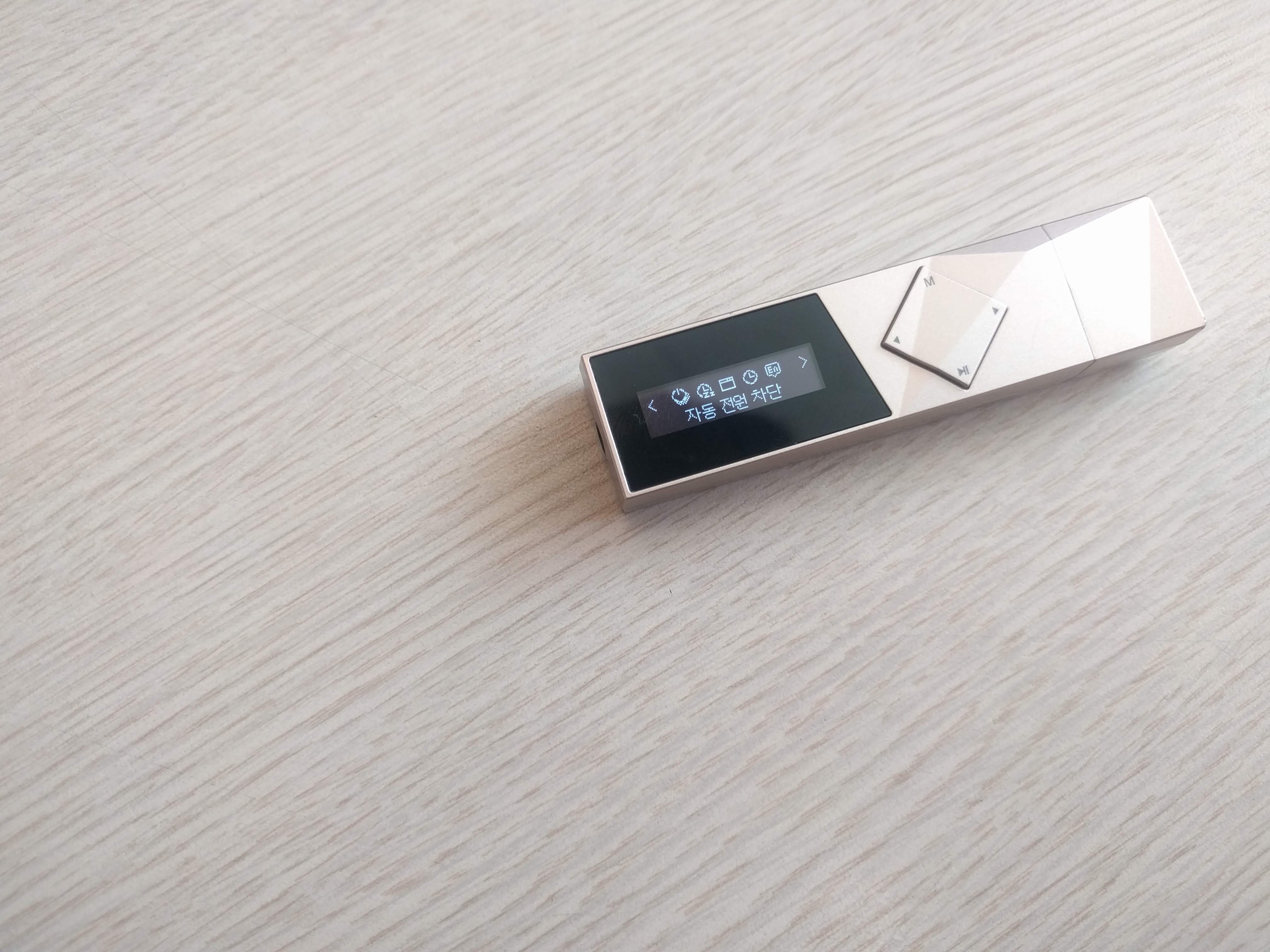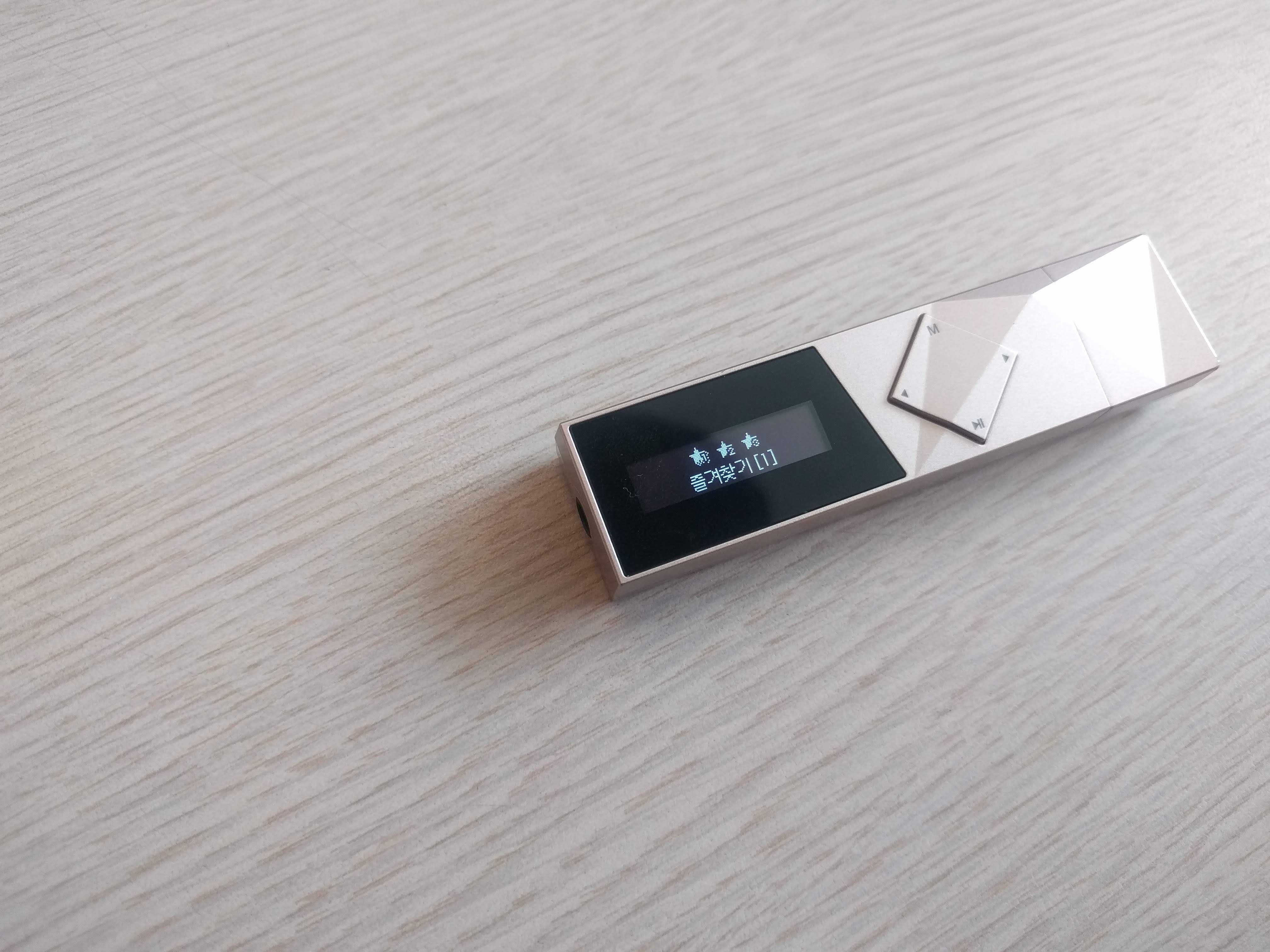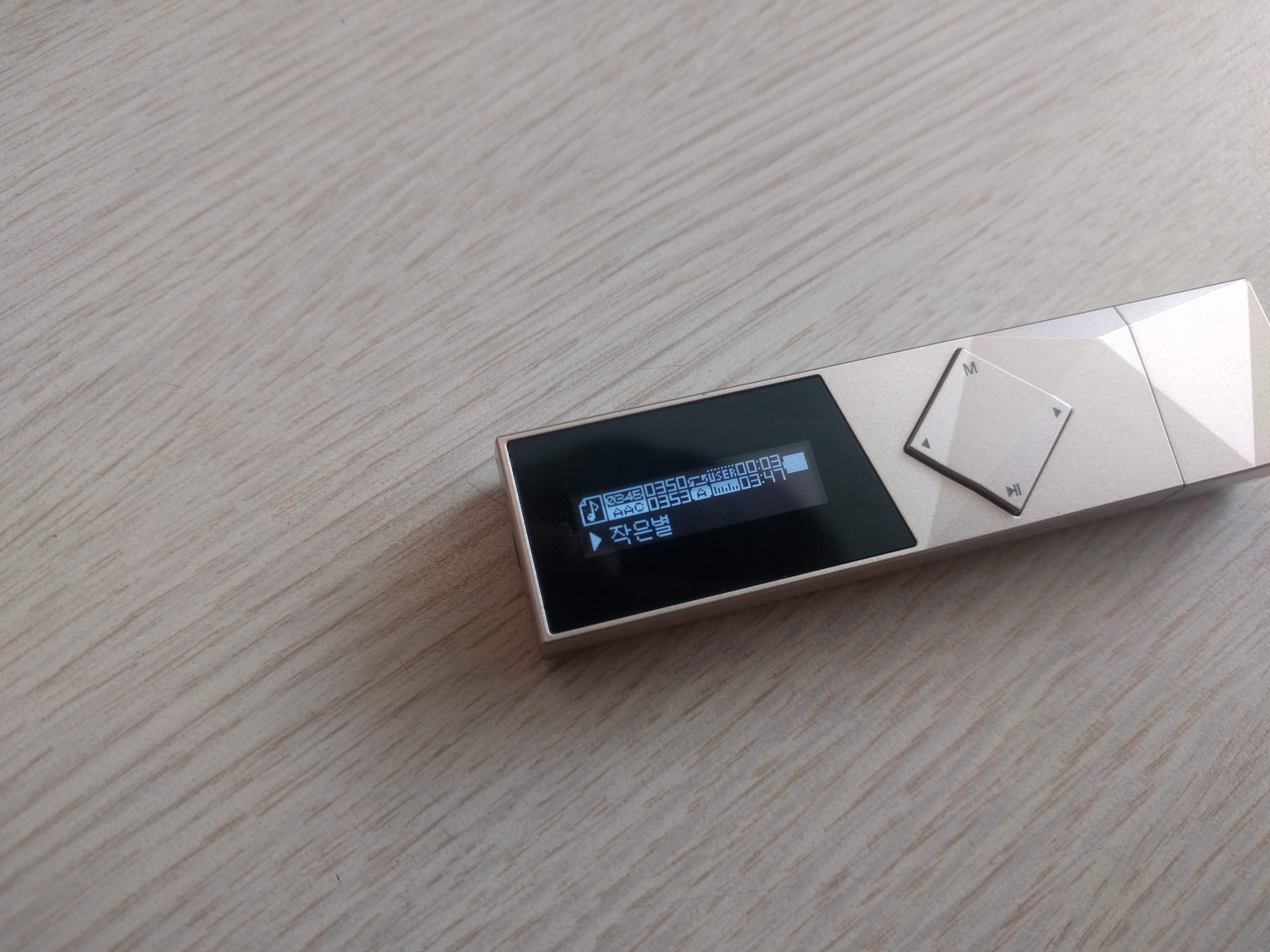 이 제품은 아이리버 T70과 달리 두 줄의 OLED 액정으로 되어있습니다. 최저 밝기로 해도 야외 시인성이 훌륭한 편이며, 버튼 조작감은 딱딱하며 잘 눌리는 편은 아닙니다. 또한 조작법이 4키만으로 구성된 탓에 조금 복잡하며, 굳이 외워두지 않는다면 헷갈릴만한 사용법도 있습니다.