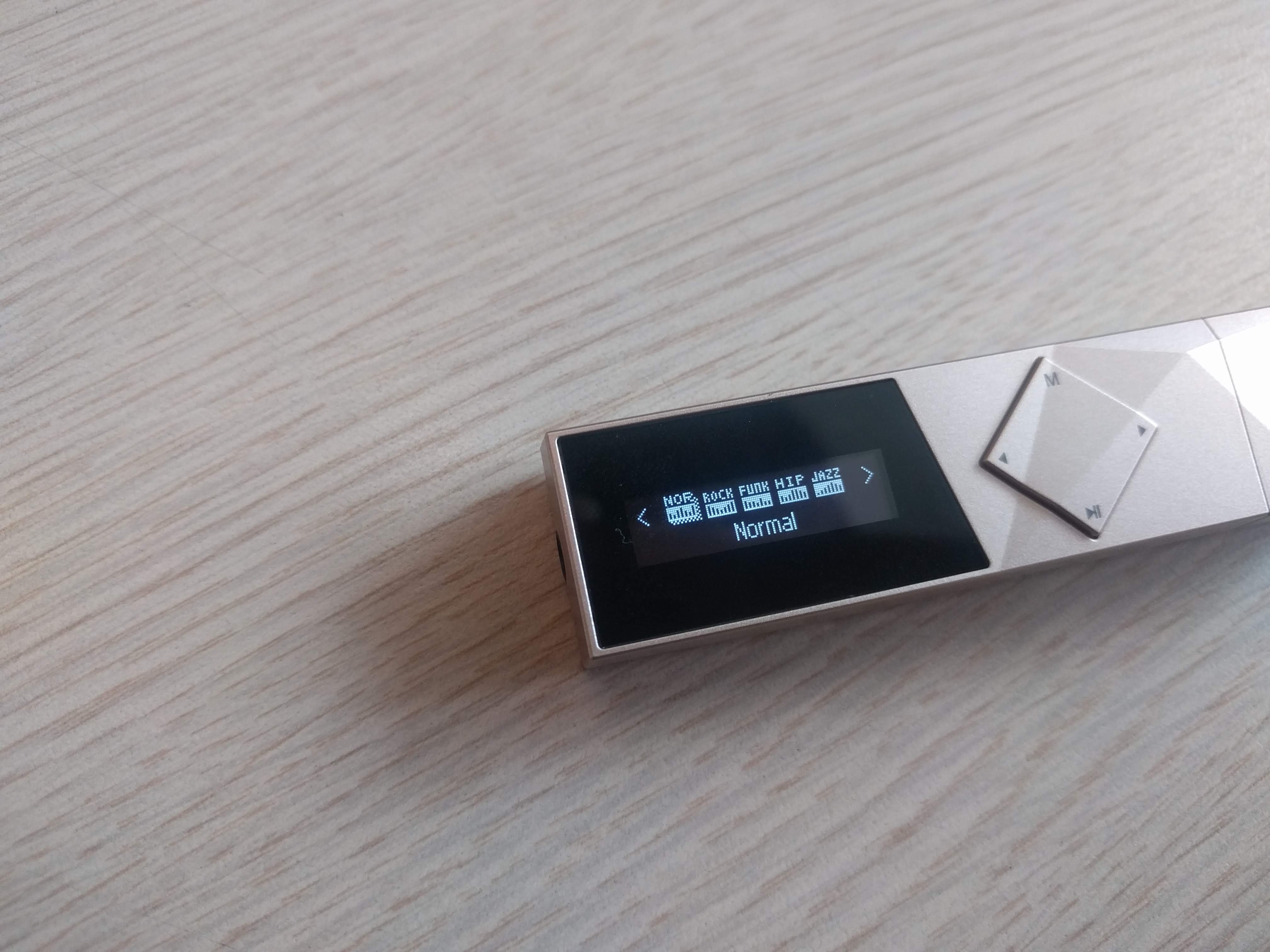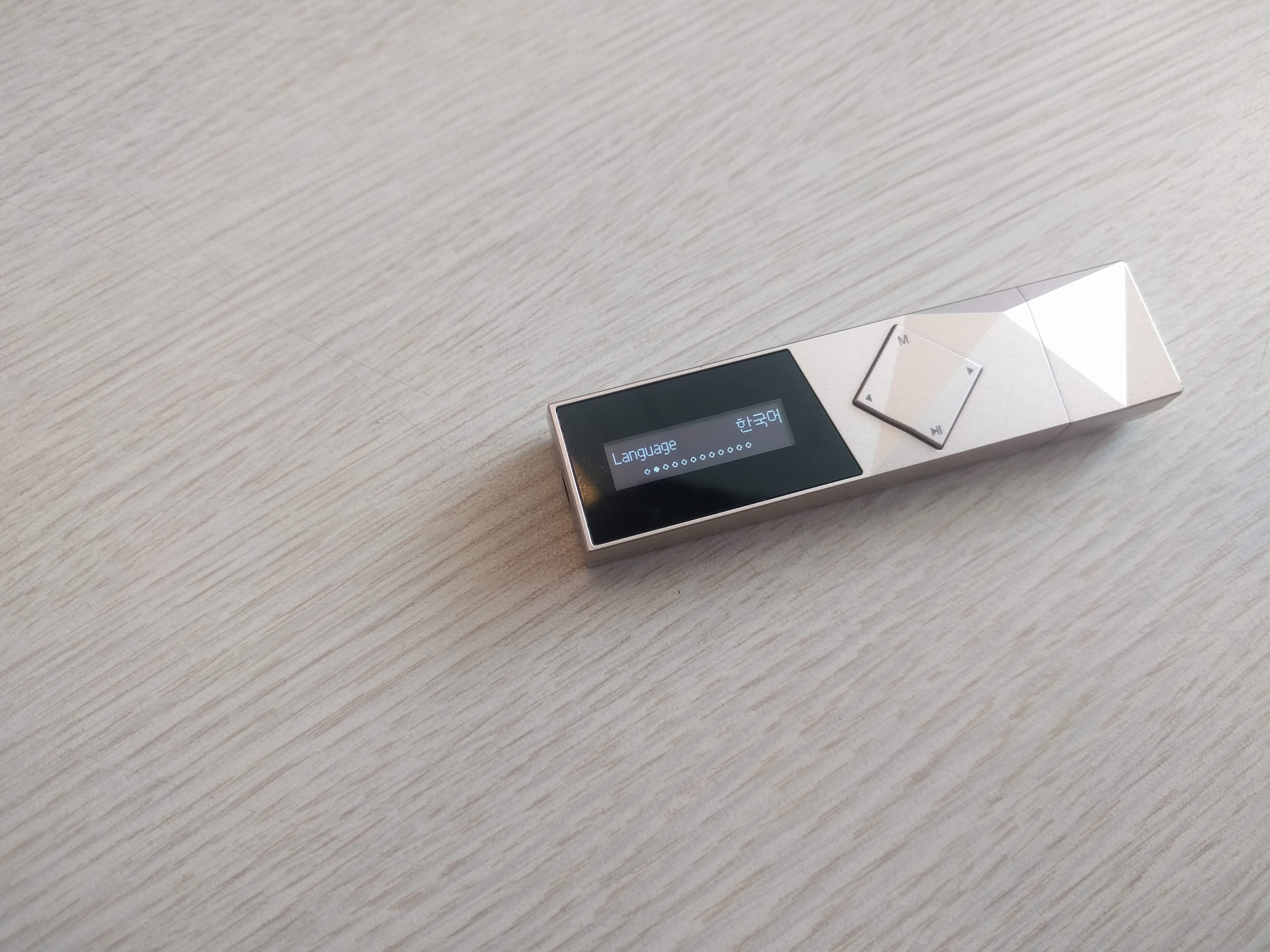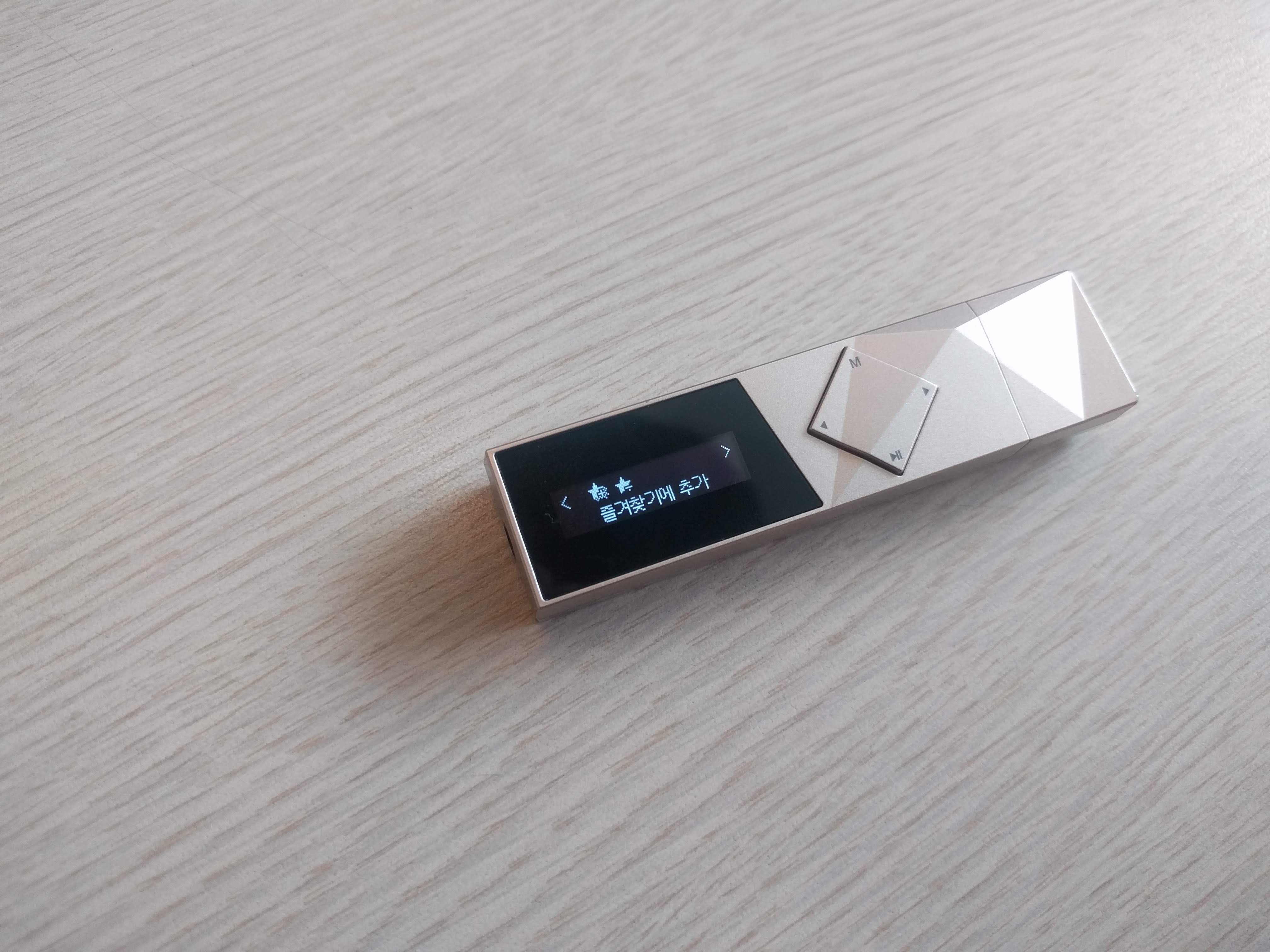 이 제품은 아이리버 T70과 달리 두 줄의 OLED 액정으로 되어있습니다. 최저 밝기로 해도 야외 시인성이 훌륭한 편이며, 버튼 조작감은 딱딱하며 잘 눌리는 편은 아닙니다. 또한 조작법이 4키만으로 구성된 탓에 조금 복잡하며, 굳이 외워두지 않는다면 헷갈릴만한 사용법도 있습니다.