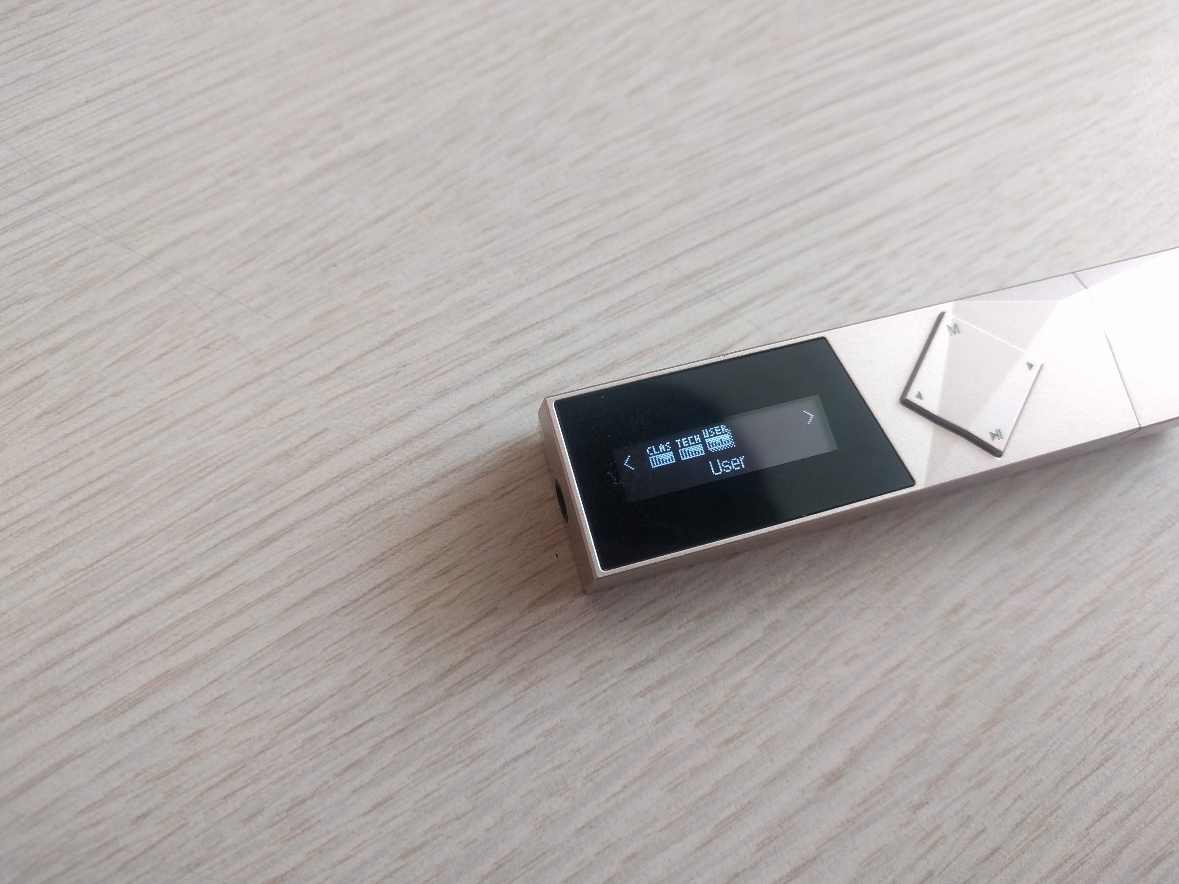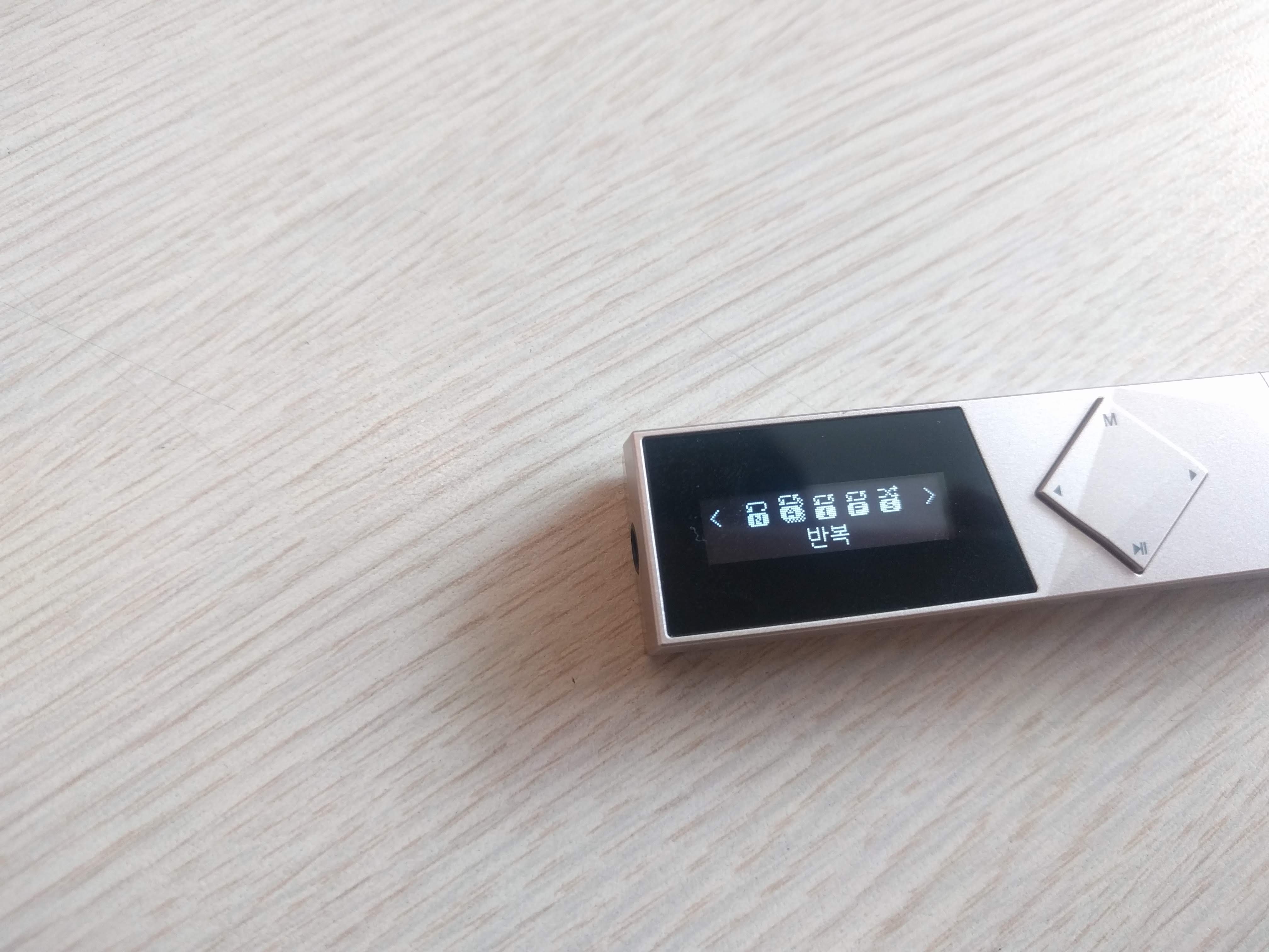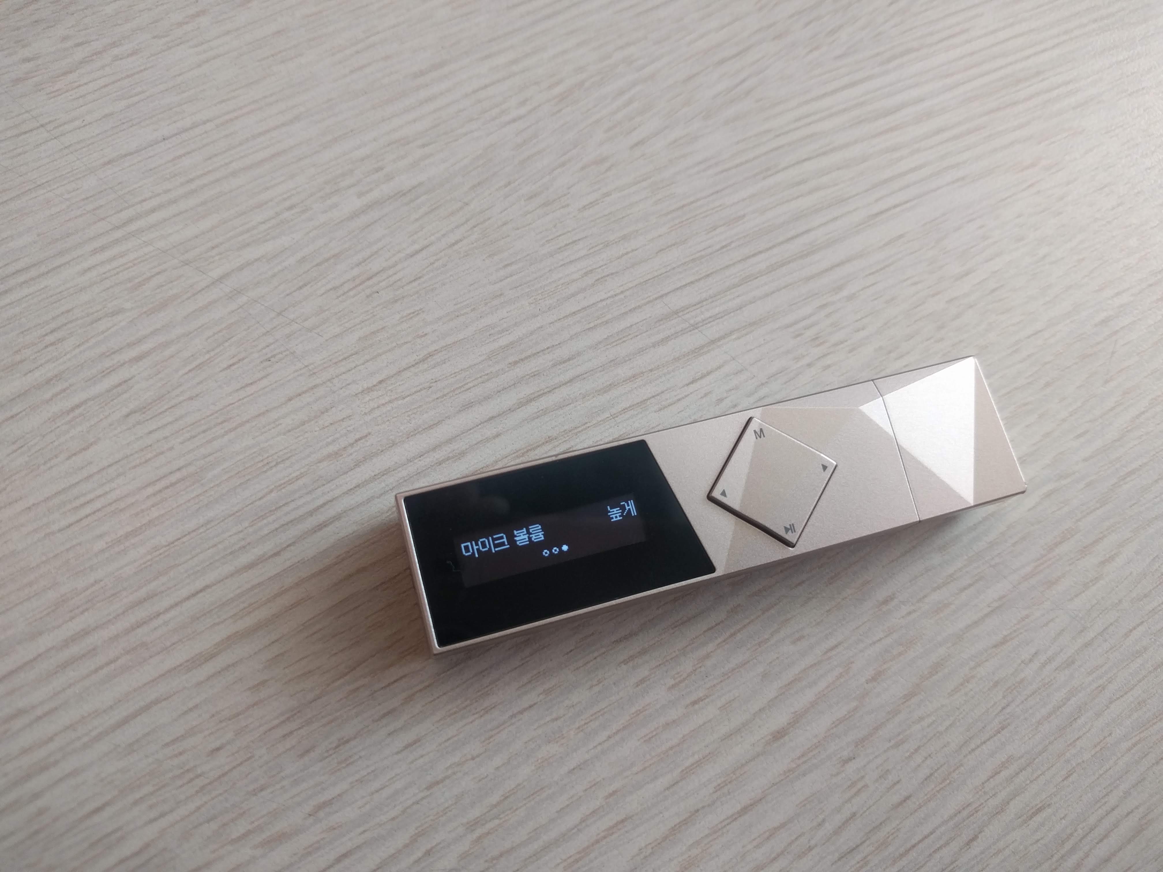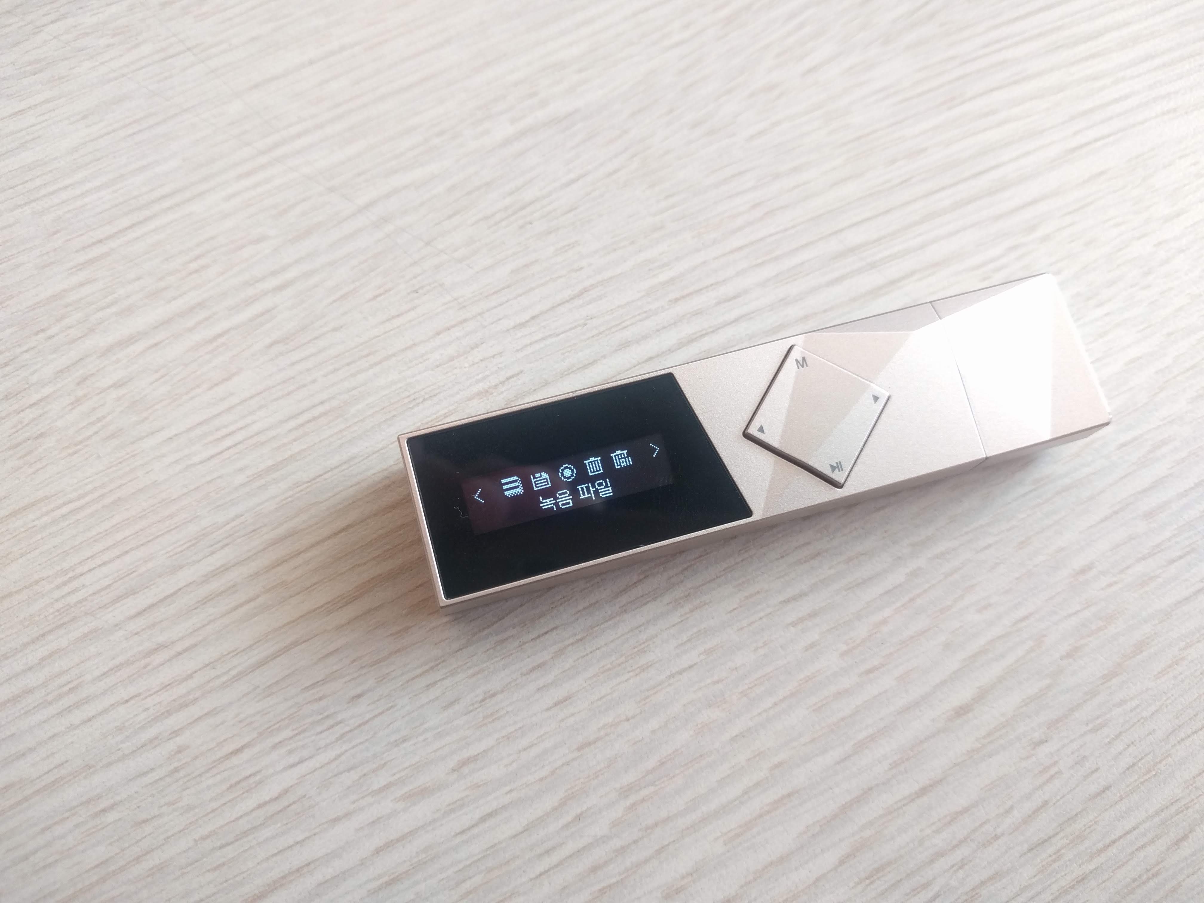 이 제품은 아이리버 T70과 달리 두 줄의 OLED 액정으로 되어있습니다. 최저 밝기로 해도 야외 시인성이 훌륭한 편이며, 버튼 조작감은 딱딱하며 잘 눌리는 편은 아닙니다. 또한 조작법이 4키만으로 구성된 탓에 조금 복잡하며, 굳이 외워두지 않는다면 헷갈릴만한 사용법도 있습니다.