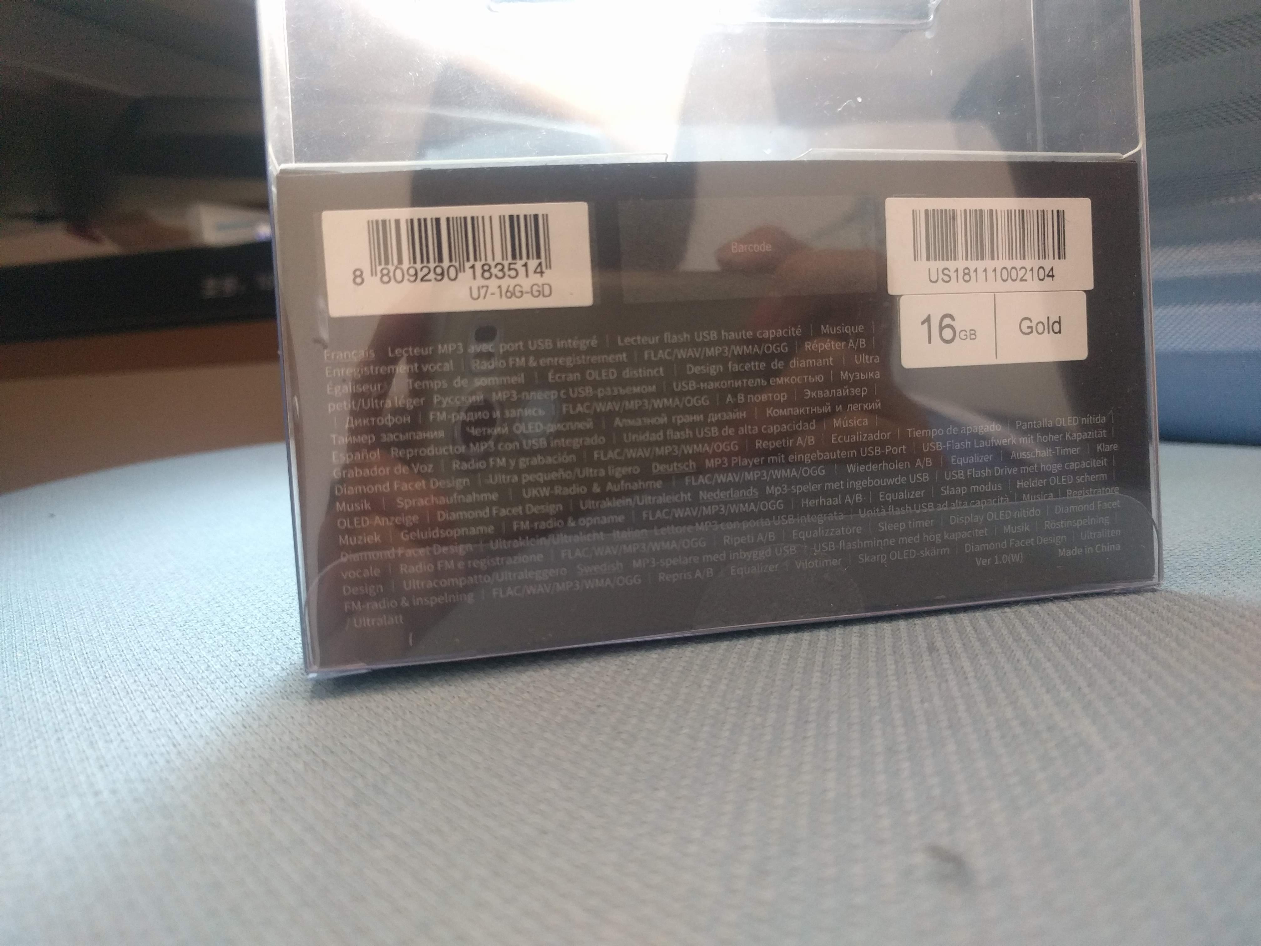 뒷면을 보면 영어, 한국어, 일본어, 중국어 이외의 코원이 진출한 국가들에서 읽을 수 있도록 뺴곡하게 각 나라 언어들로 iAUDIO U7 모델의 특징이 적혀있습니다. 바코드가 있어야 할 가운데 자리에 없는 것은 무슨 이유인지 모르겠지만, 해당 부분에는 아마 오프라인 소매점의 자체 바코드가 붙지 않을까 싶습니다.