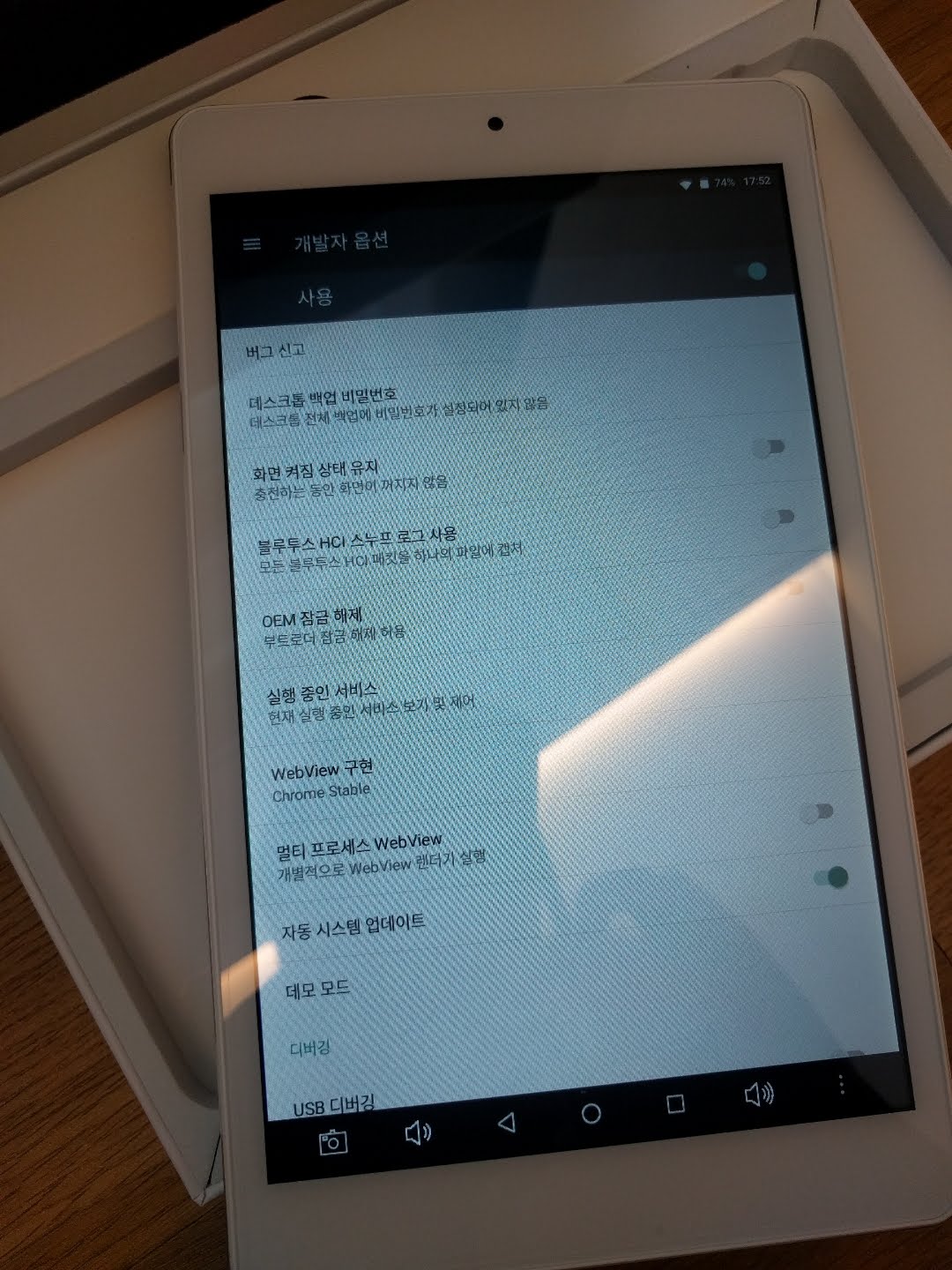 개발자 옵션은 제대로 살아있습니다. 데모모드도 사용 가능하므로 앱 개발에도 어느정도 사용할 수 있습니다.
