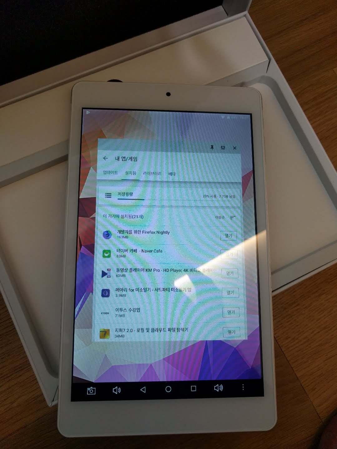 다른 태블릿과는 조금 다른 기능으로 이 작은 화면에도 멀티 윈도우를 지원한다는 점입니다.