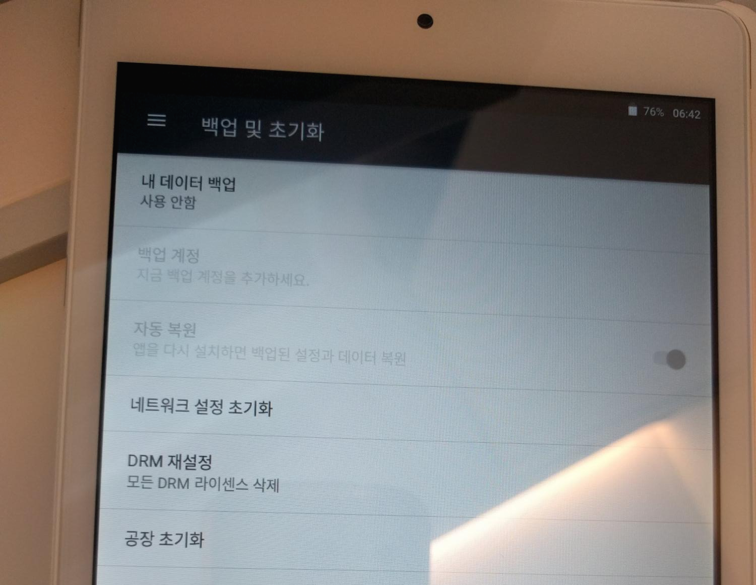 위 사진과 달리 다중 사용자 설정 기능이 없는 점은 상당히 아쉬운 점입니다. 설정 메뉴 자체가 없으므로 히든 설정 등을 통해서 사용하는 것도 불가능하기에, 시스템 UI 중지나 재부팅으로 인해 사용자 아이콘을 보는 정도가 다 입니다.