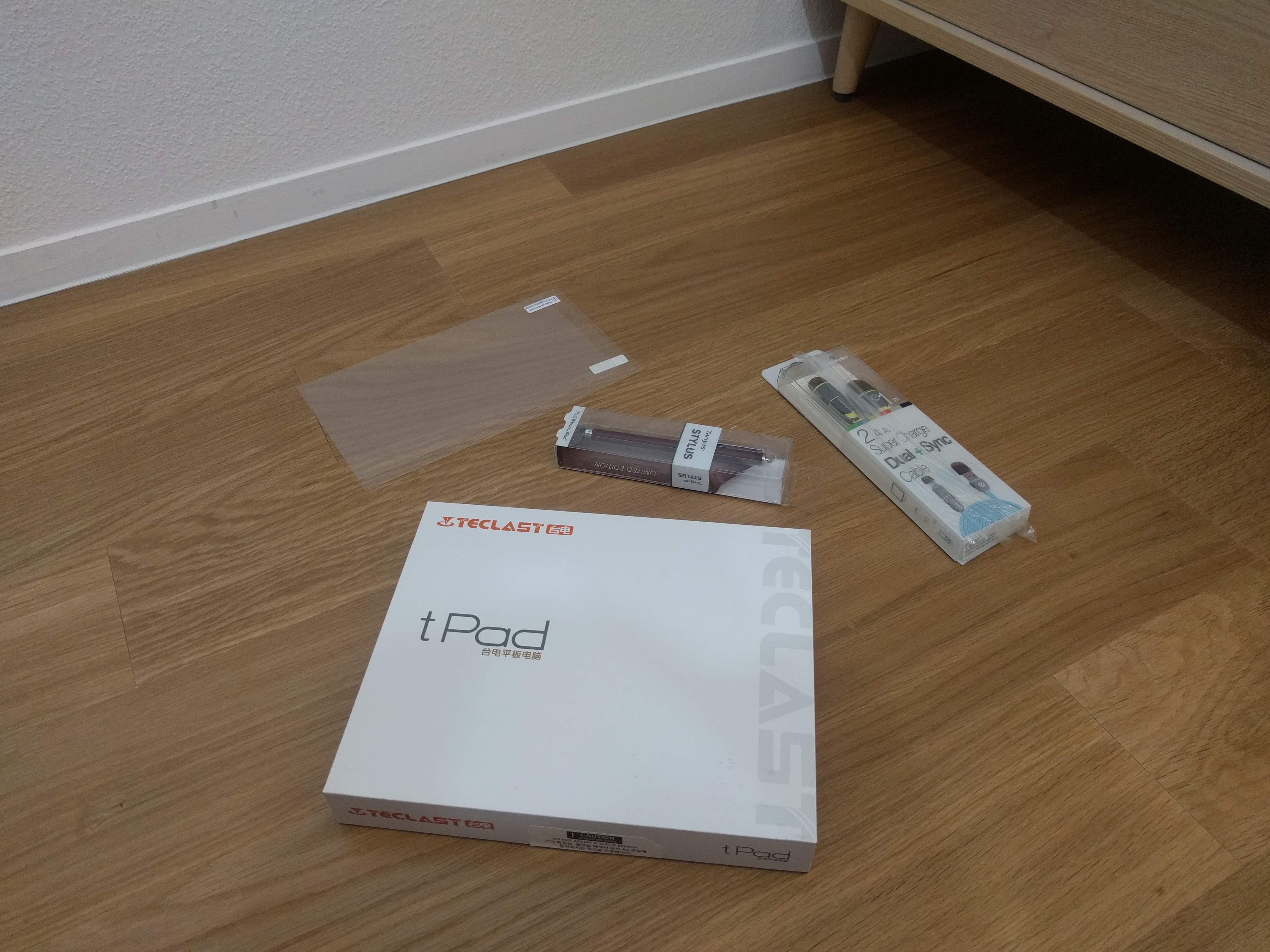 구매 당시 사은품으로 라이트닝 + 5핀 케이블, 터치펜 및 플라스틱 보호필름 2매가 제공되어, 구성품은 위와 같습니다.