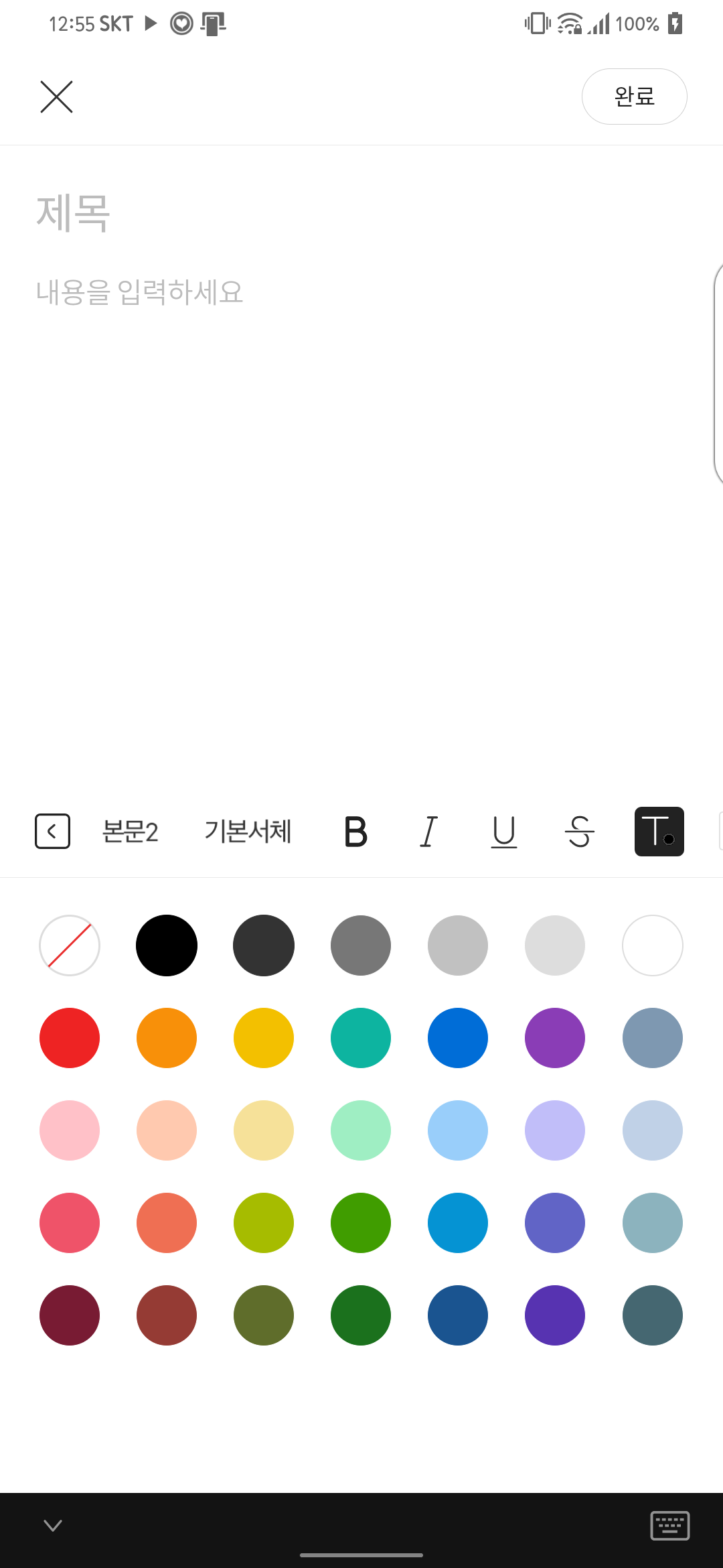 글자 색도 다양하게 지정할 수 있어서, 원래도 다양하긴 했지만 다소 부족한 감이 있었던 색상도 많이 보강되었습니다. 특히 연한 색상과 많이 짙은 색상이 보강되어 디자이너는 괴롭겠지만 화려하고 다채로운 글도 마음만 먹으면 모바일에서 쓰는 게 가능할 것만 같네요.