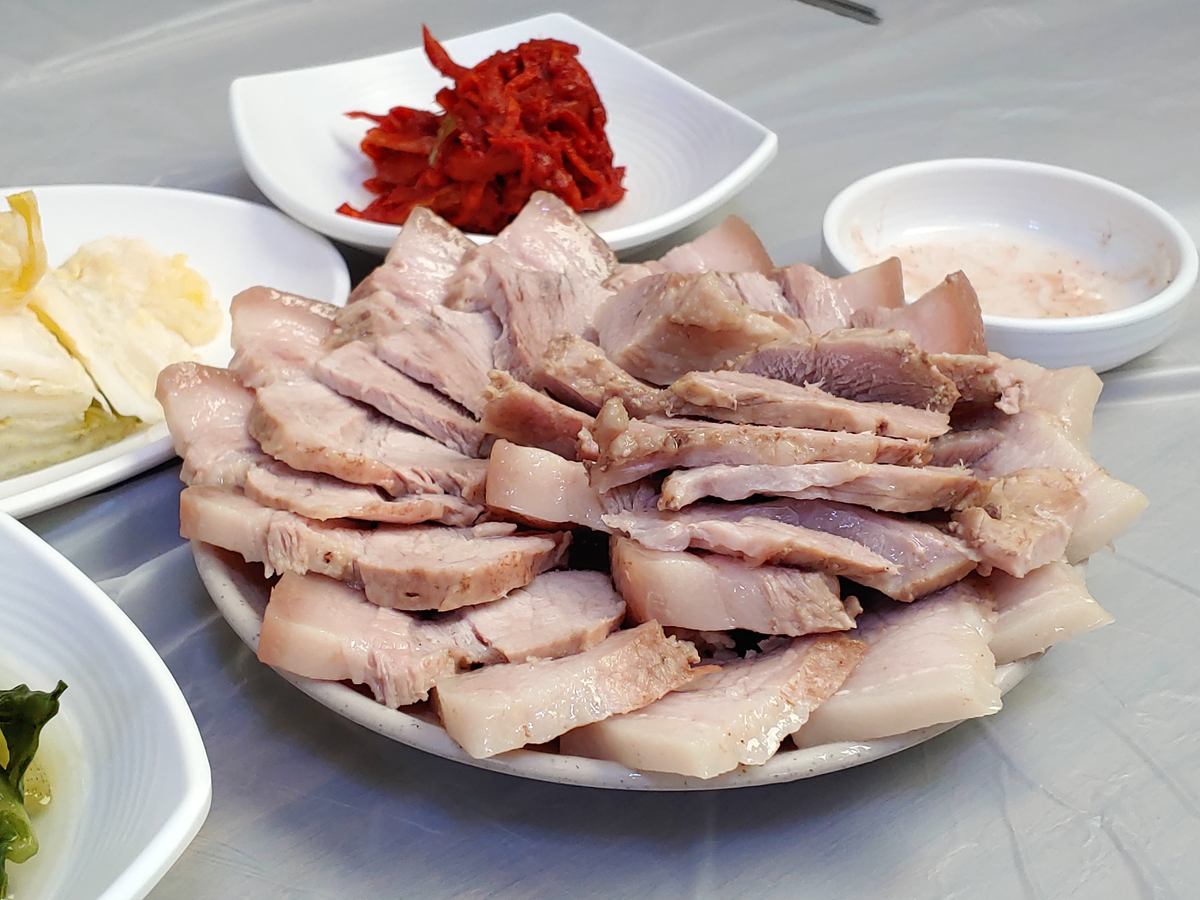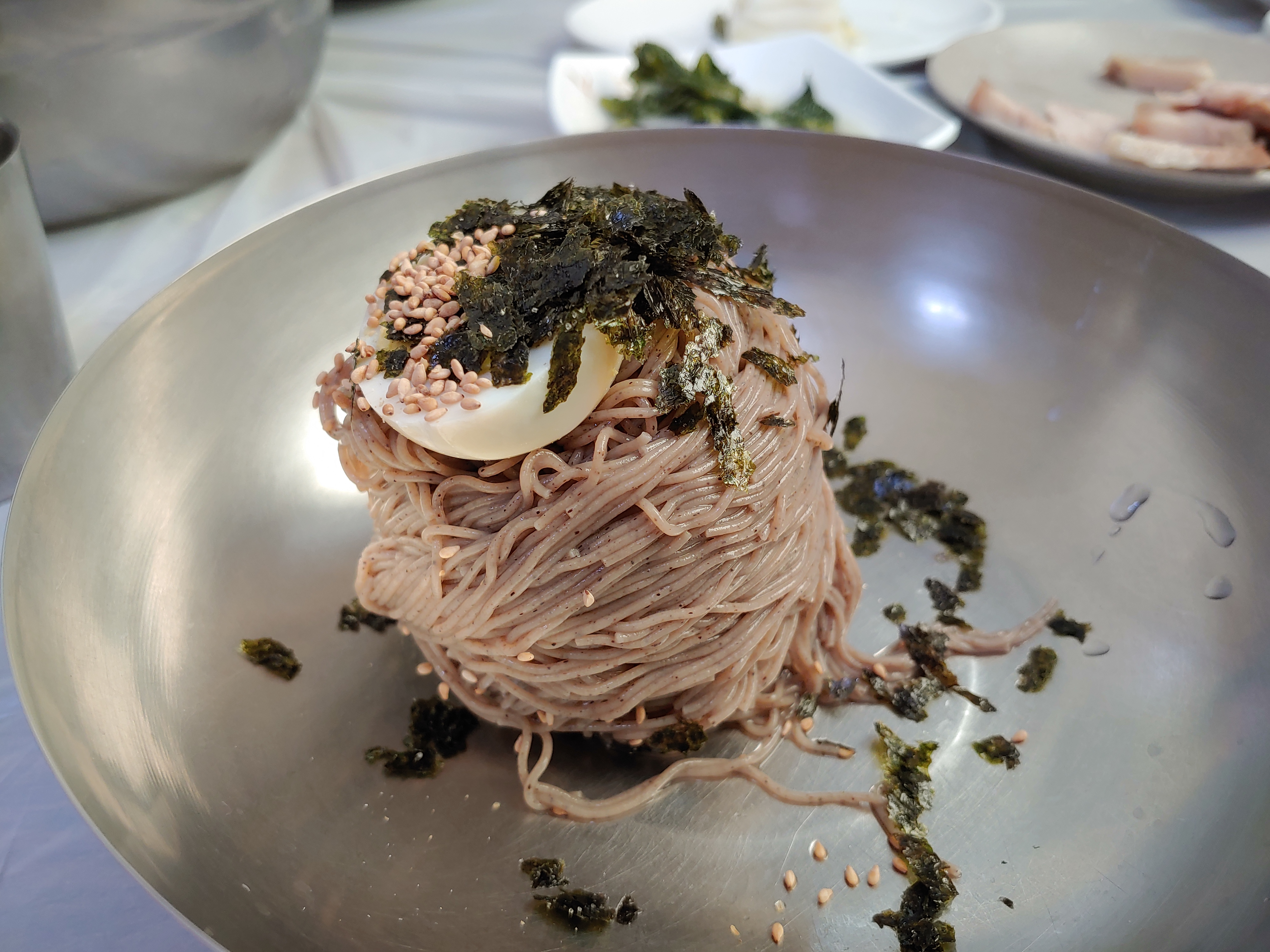 그렇게 한 타임 후 들어가자마자 편육과 막국수를 주문했습니다.