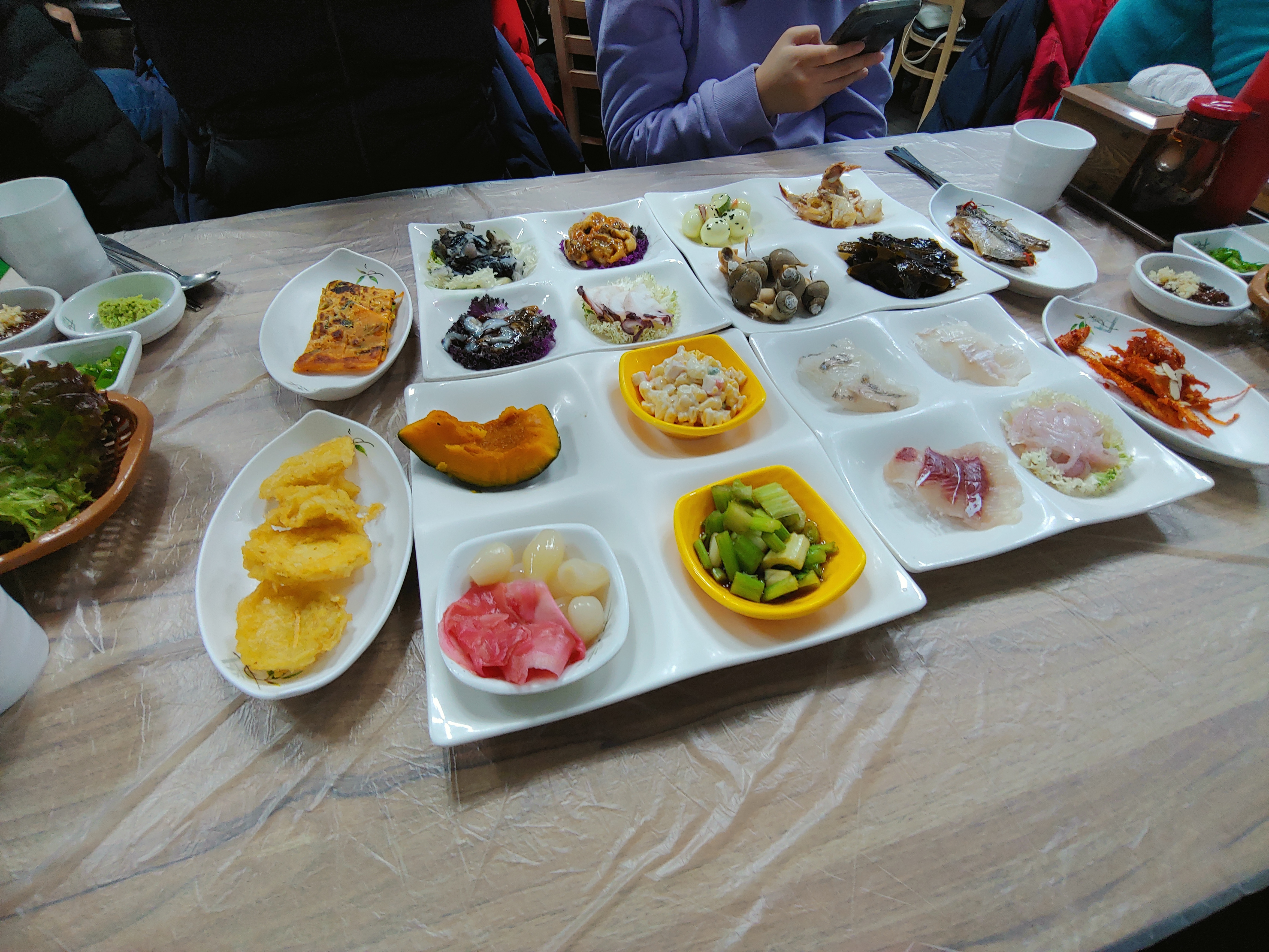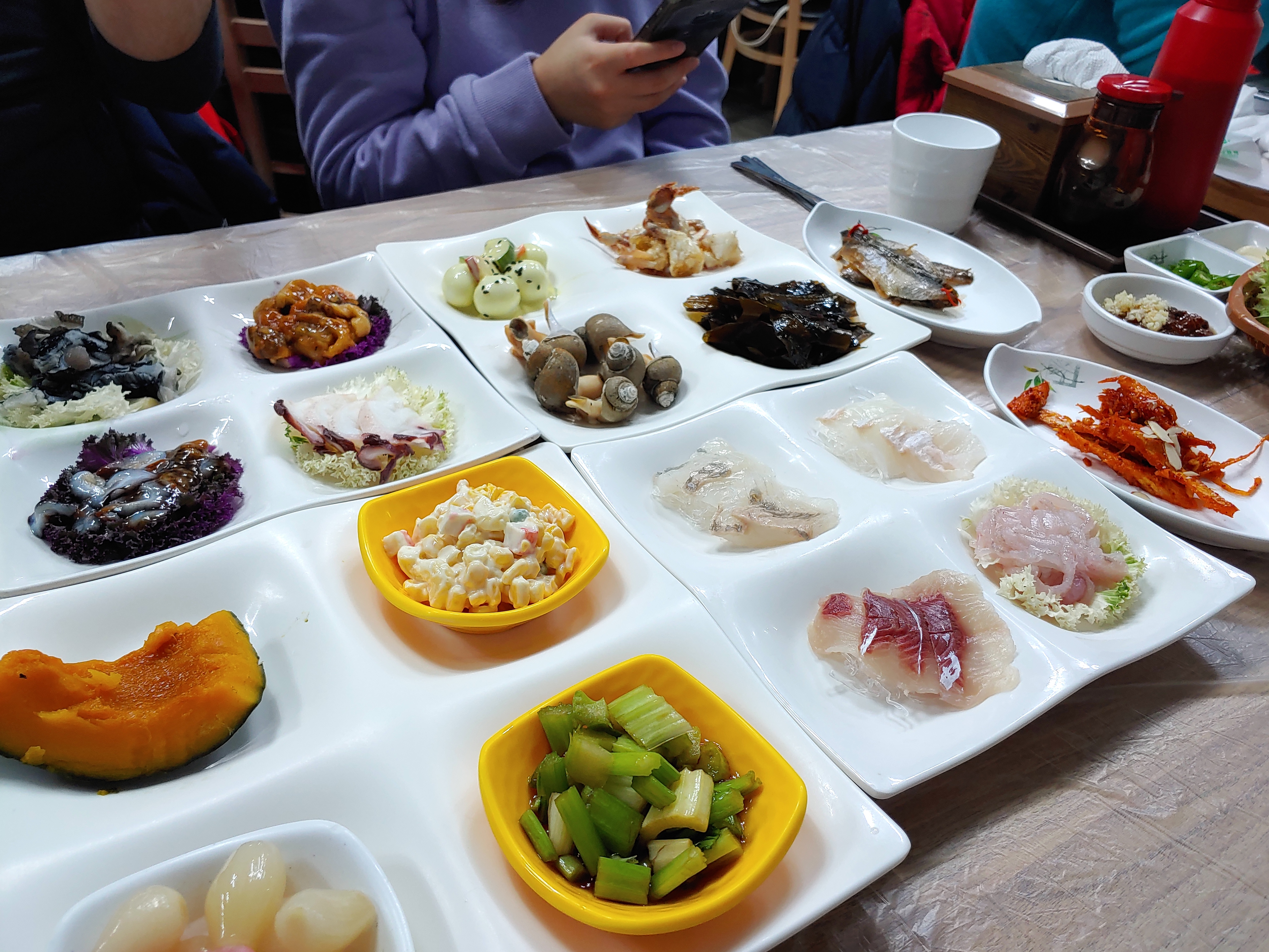 저녁식사는 갈매기 횟집이라는 곳에서 하기로 했습니다. 아쉽게도 저는 아까 먹은 빵때문에 더이상 식사하기 어려운 상황이어서 거의 먹지 못하고, 메인 메뉴가 나오기 직전까지만 식사하고 밖으로 나왔습니다.