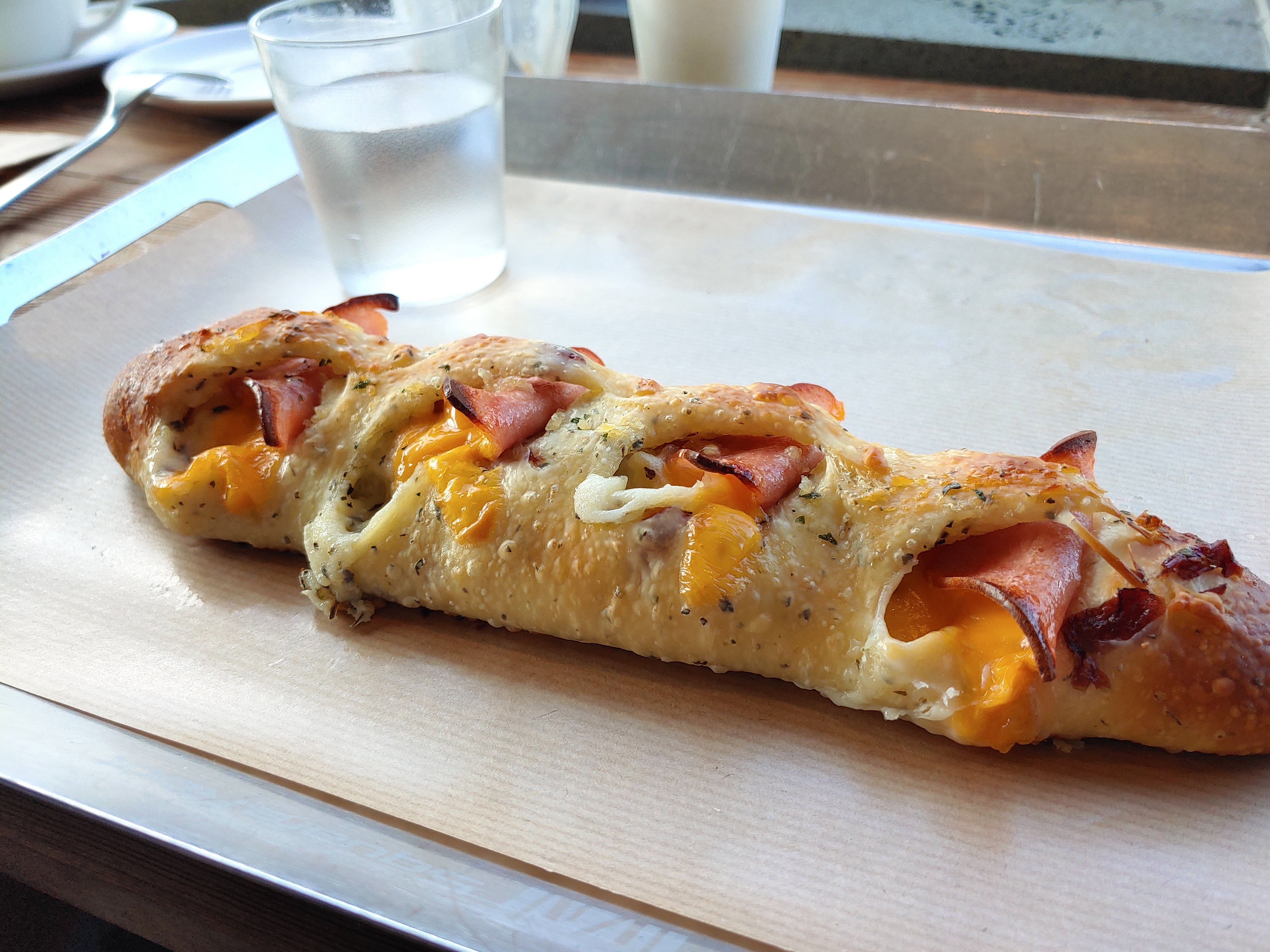 육종 마늘빵을 비롯, 바다정원과는 다른 종류의 빵들이 즐비하게 진열되어 있었습니다. 워낙에 제가 빵을 좋아하는 편이라 어떤 빵이든 만족하고 먹었는데, 마지막으로 고른 위 사진의 바질 들어간 빵은 치즈 부위가 조금 달아 아쉬웠습니다.