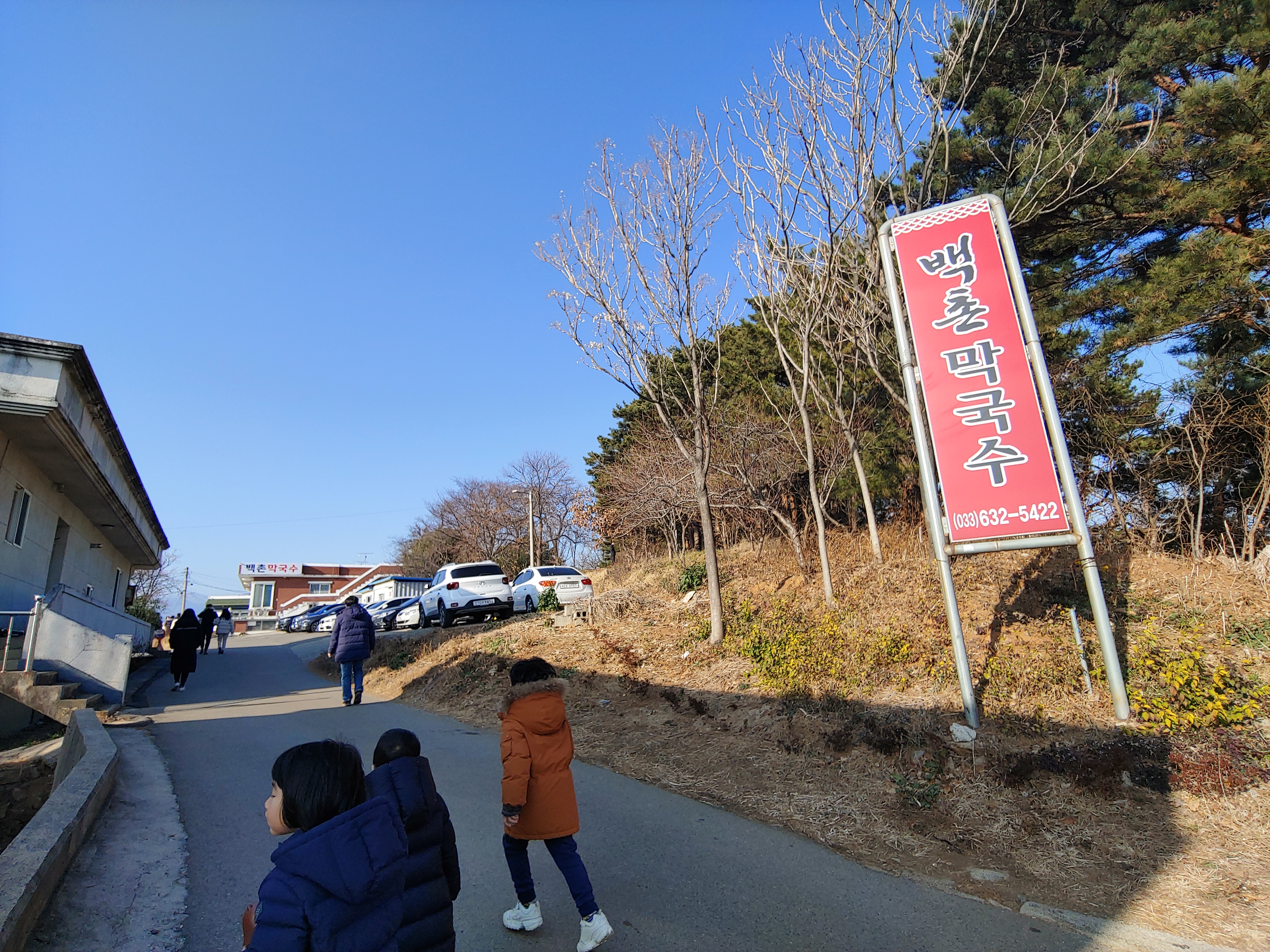이렇게 일찍 도착하는 바람에 부모님께서도 시간을 예측하지 못하셔서 약 1시간 정도 뒤에 합류할 수 있었습니다. 아침식사 겸 점심식사를 아직 하지 않은 시점이어서 속초에서 유명하다는 백촌막국수를 먹어보기로 했습니다. 지금까지는 파주에 있는 오두산 막국수만 먹어봤다보니, 백촌 막국수는 어떤 맛일까 궁금하더군요.