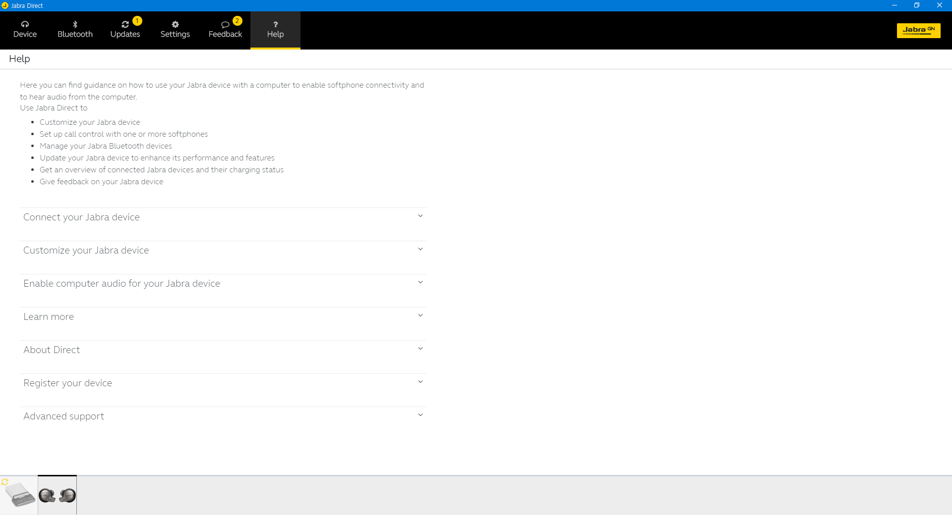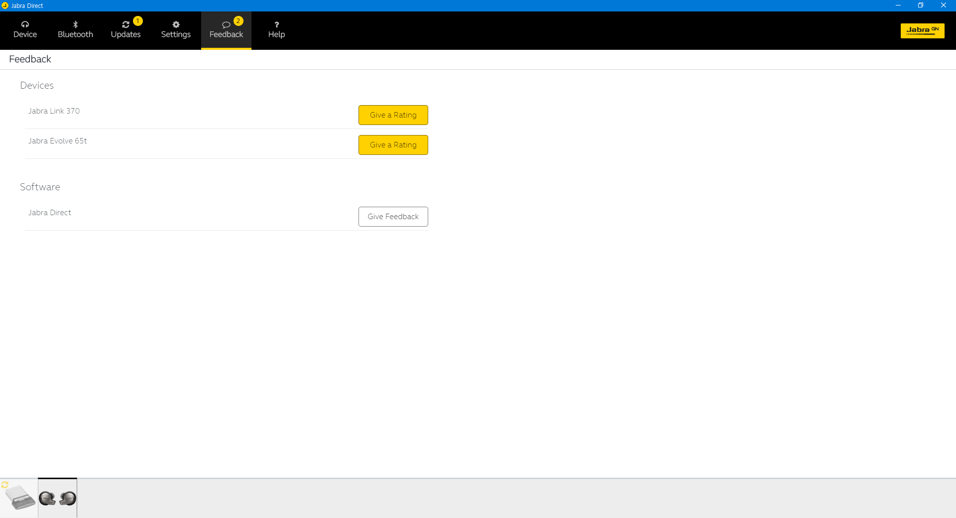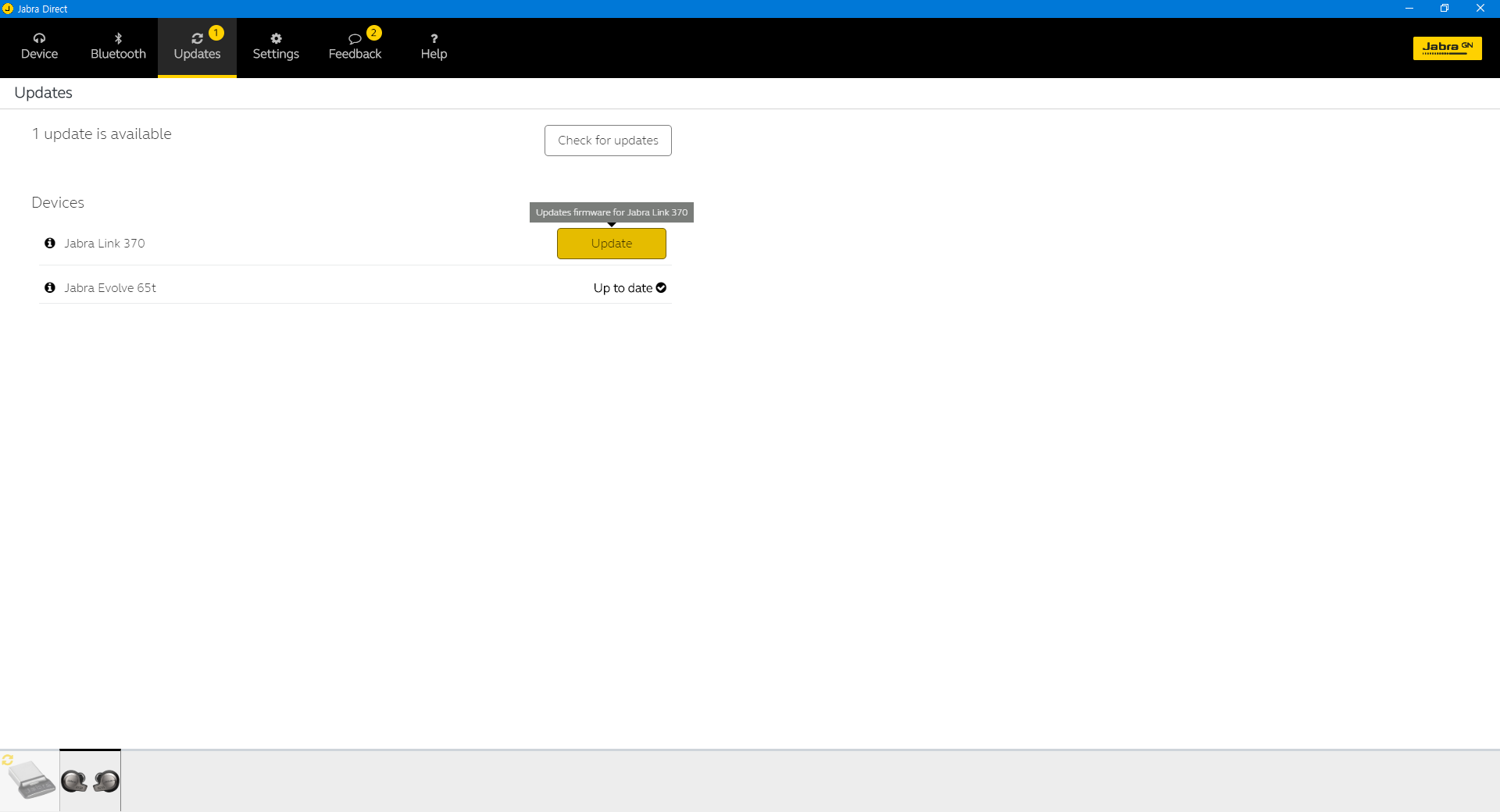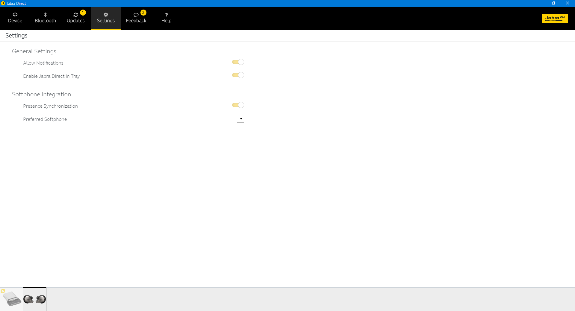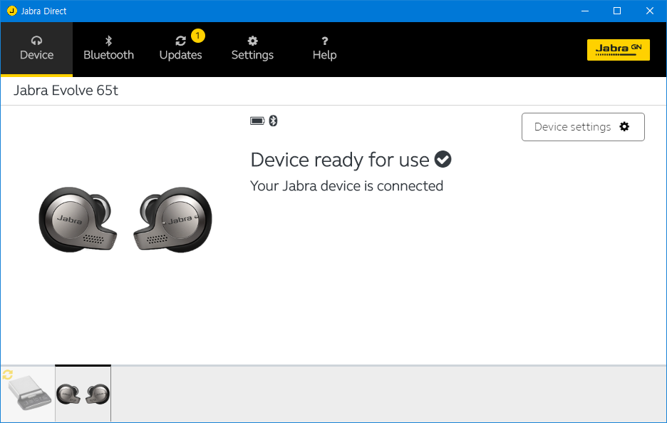 소프트웨어의 UI는 상당히 간결합니다. Jabra Link 370도 일단은 제품이기 때문인지 두 장치가 별도로 잡히더군요.