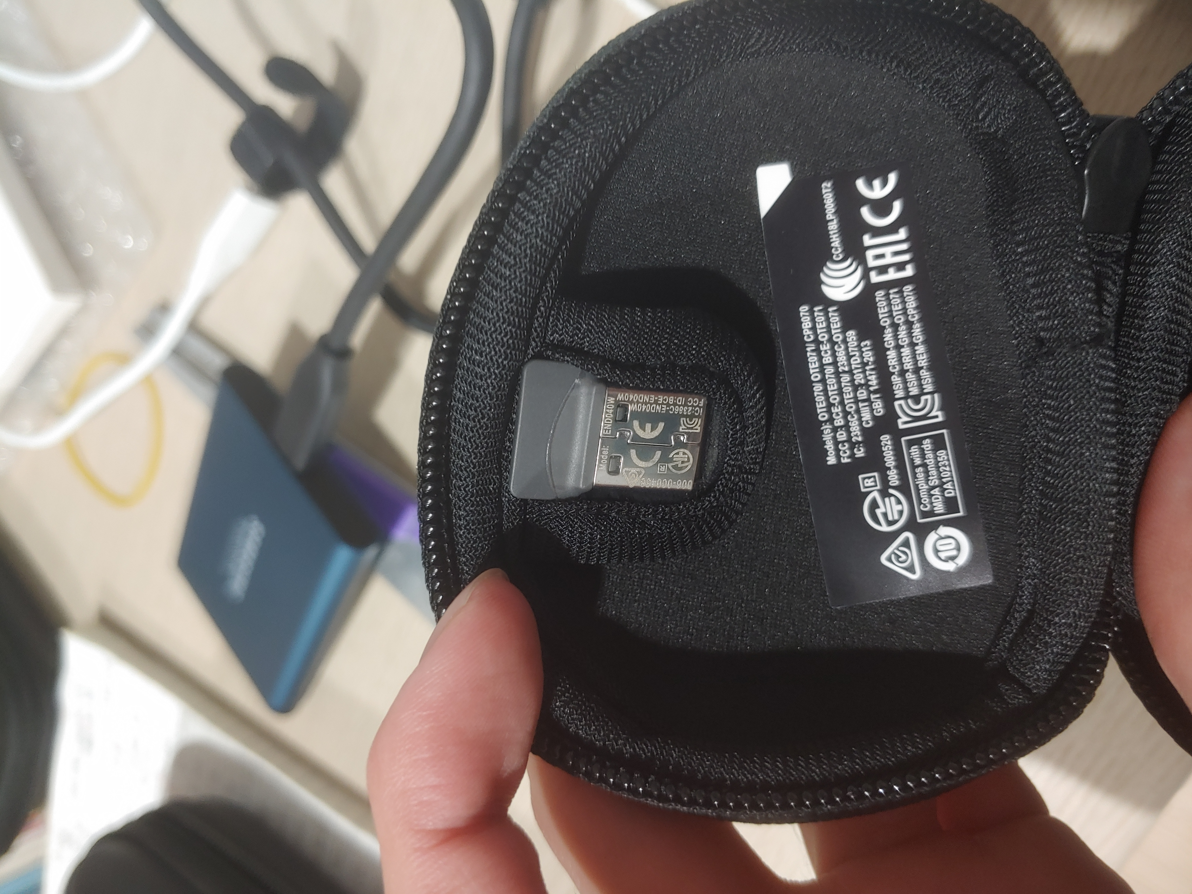 파우치에는 Jabra Link 370이 들어있습니다. 각종 인증 사항이 USB 연결 부분에 뺴곡히 적혀있는 걸 볼 수 있었습니다.