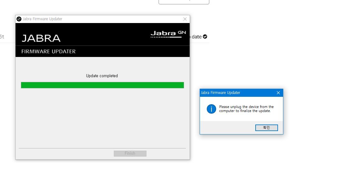 펌웨어 업데이트를 위해서는 Link 370 기기에 한해서 제거 후 [확인]을 누르고 다시 연결해야 했습니다. 만약 조금 실수하여 제거 했다가 다시 삽입 후 확인을 누르면 살짝 Windows 자체의 소리 설정이 꼬입니다. 원래 사용하던 Jabra Link 370 프로필 대신 새로운 프로필인 2 - Jabra Link 370 이라는 이름의 기기로 변경되면서 기존에 쓰고 있던 소리 설정 값이 달라지기 때문입니다.