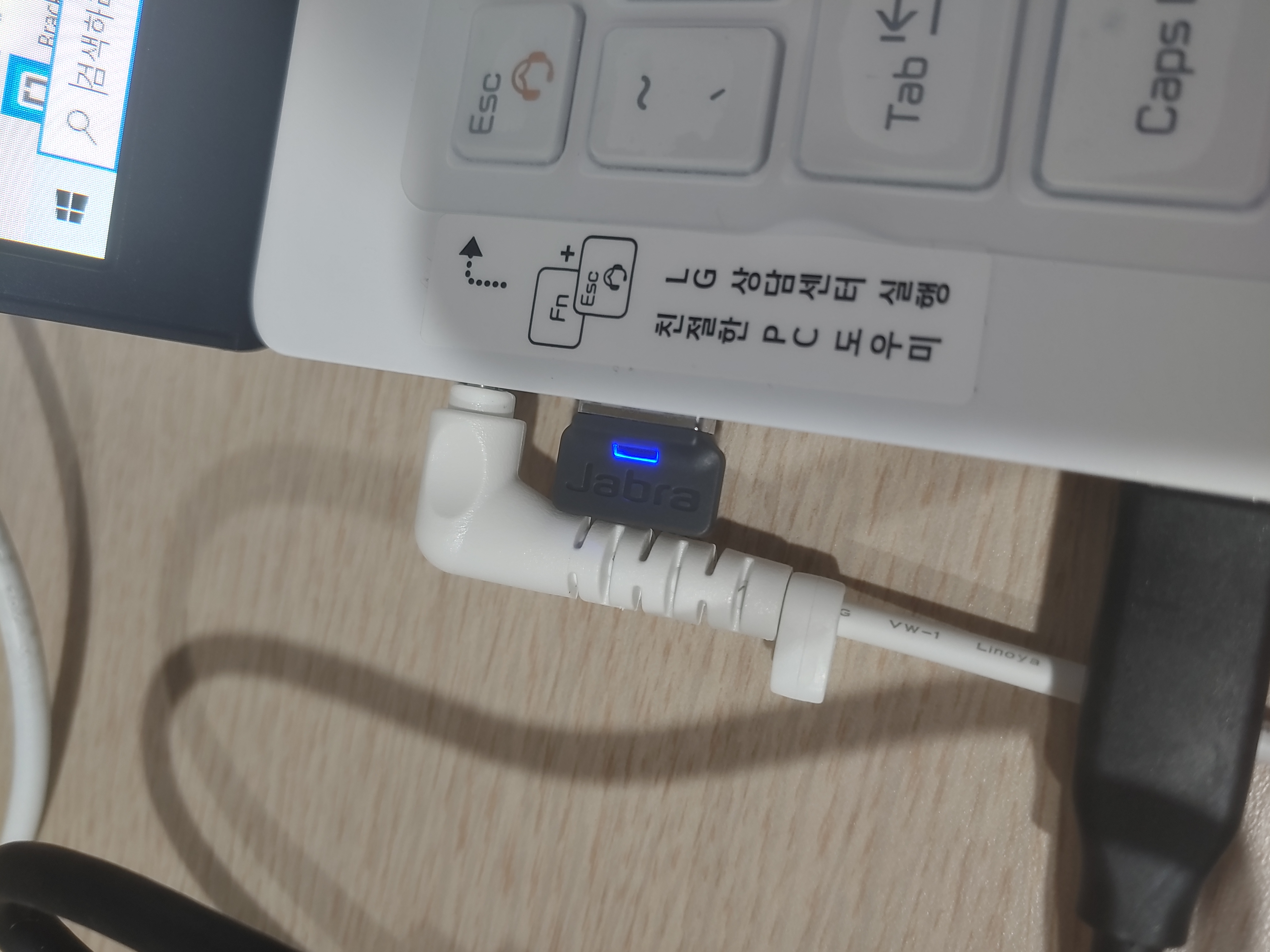 그러나 이 제품은 LED가 나온다는 차이점이 있습니다. 개인적으로는 USB 단자에서 제거할 때의 내구성이 걱정되기는 하는데, 제품 자체는 기본적으로 동봉되는 만큼 PC에 연결하자마자 Jabra Evolve 65t와 자동으로 연결되는 등 기능 자체는 괜찮은 편입니다.