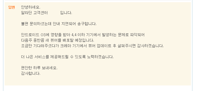 알라딘, 일부 크레마 기기에서 오류 수정한 뷰어 배포 예정