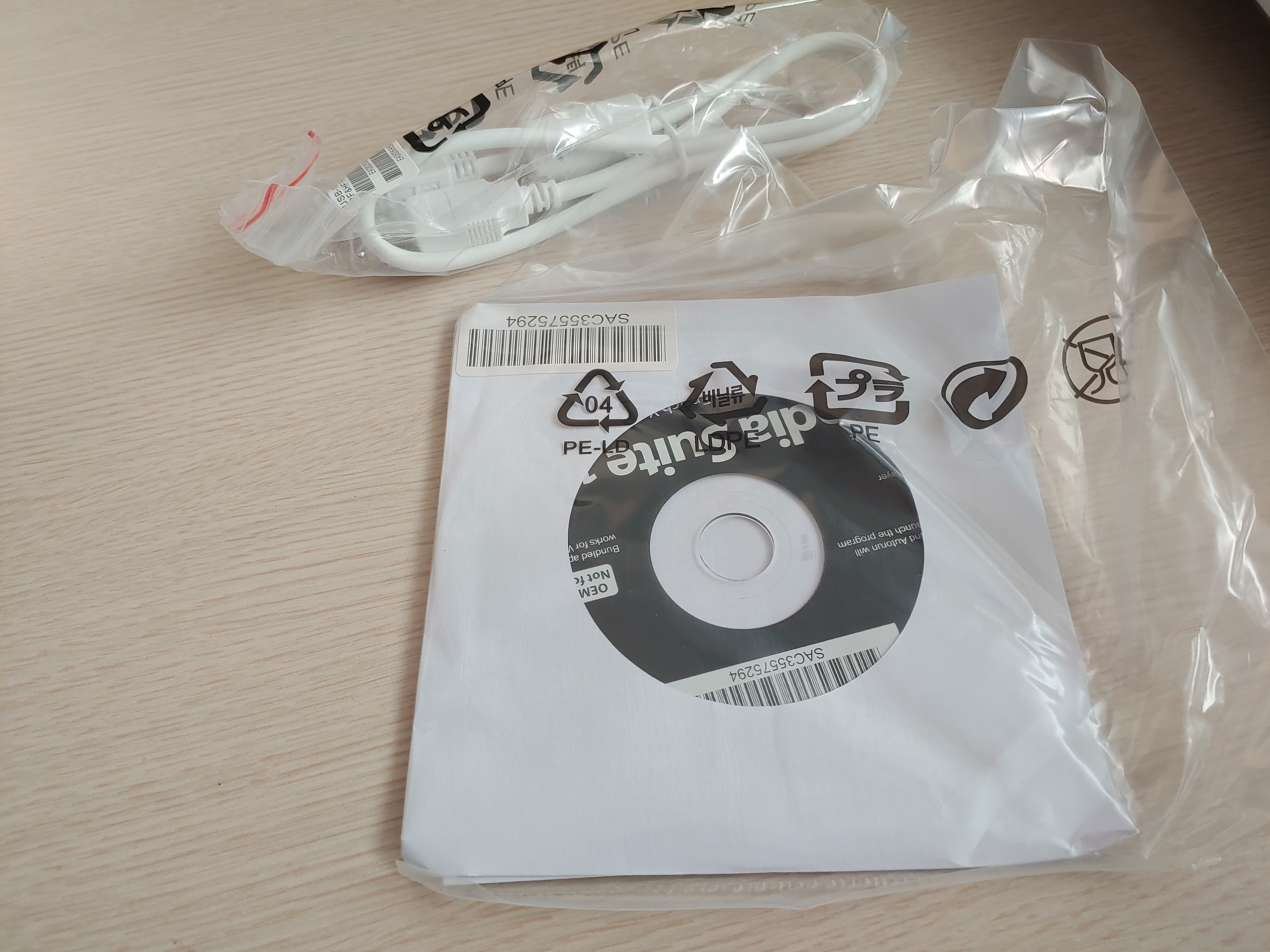 박스를 개봉했을 때 제일 먼저 나오는 부속품은 USB 연결 커넥터 및 Cyberlink Media Suite 소프트웨어였습니다. 저기 동봉된 CyberLink사의 소프트웨어는 상당한 구버전으로 Power2Go 소프트웨어가 동봉된 판은 8인데 최신은 13이랍니다.