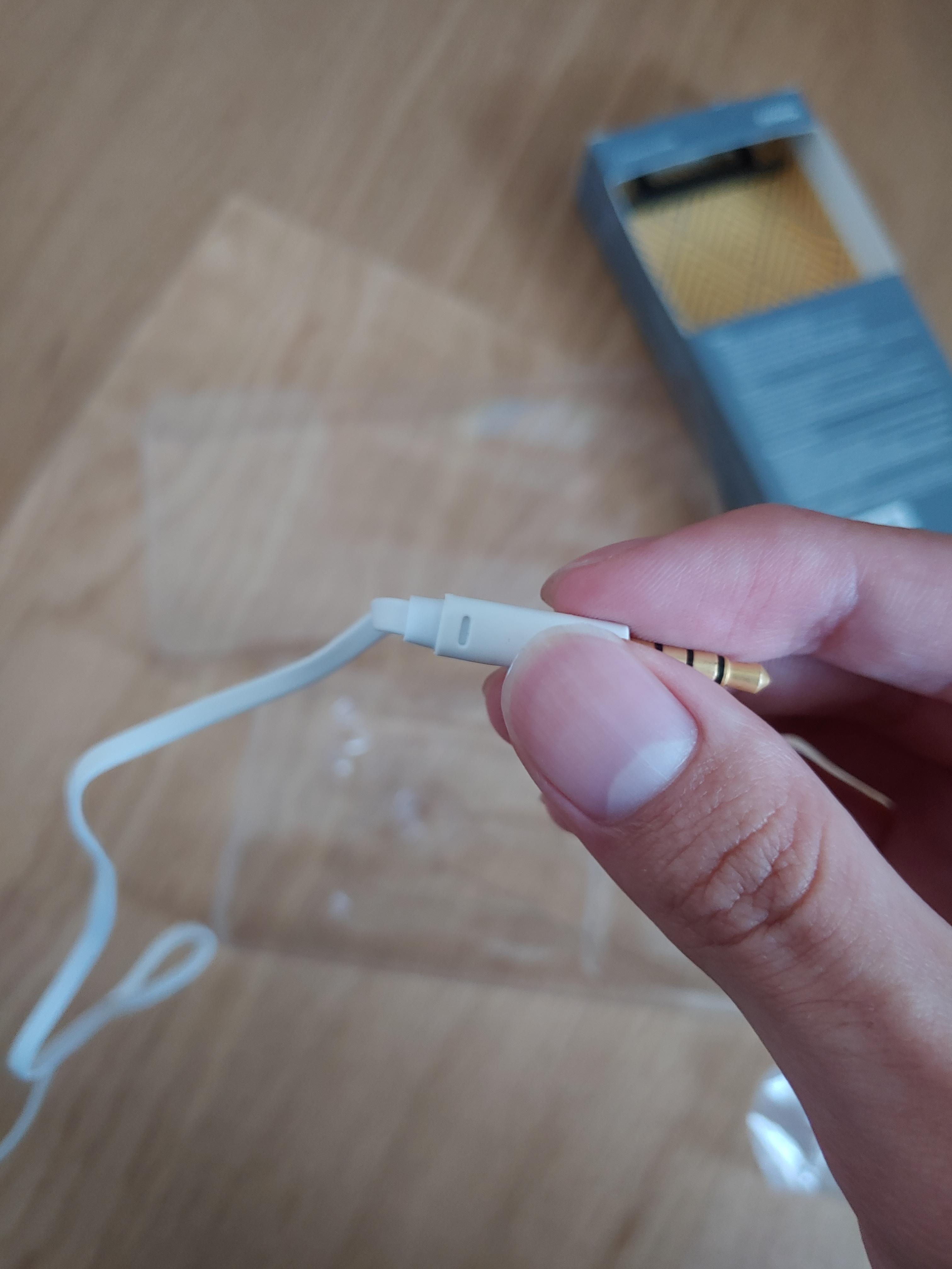 이어폰 단자 쪽은 ㄱ자 플러그가 아닌 일자형 플러그입니다. 칼국수 케이블로 불리는 곧은 형태의 케이블을 사용해서 단선 걱정은 다소 적겠으나 스마트폰에 사용하는 만큼 주머니에 넣고 사용하기에는 아쉬웠습니다.