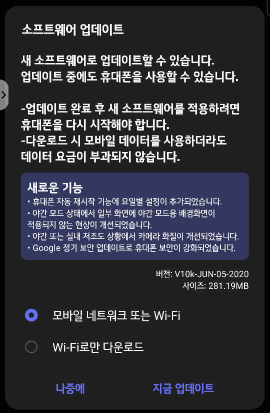[체험단 외전] LG VELVET 10k 펌웨어 업데이트 후기