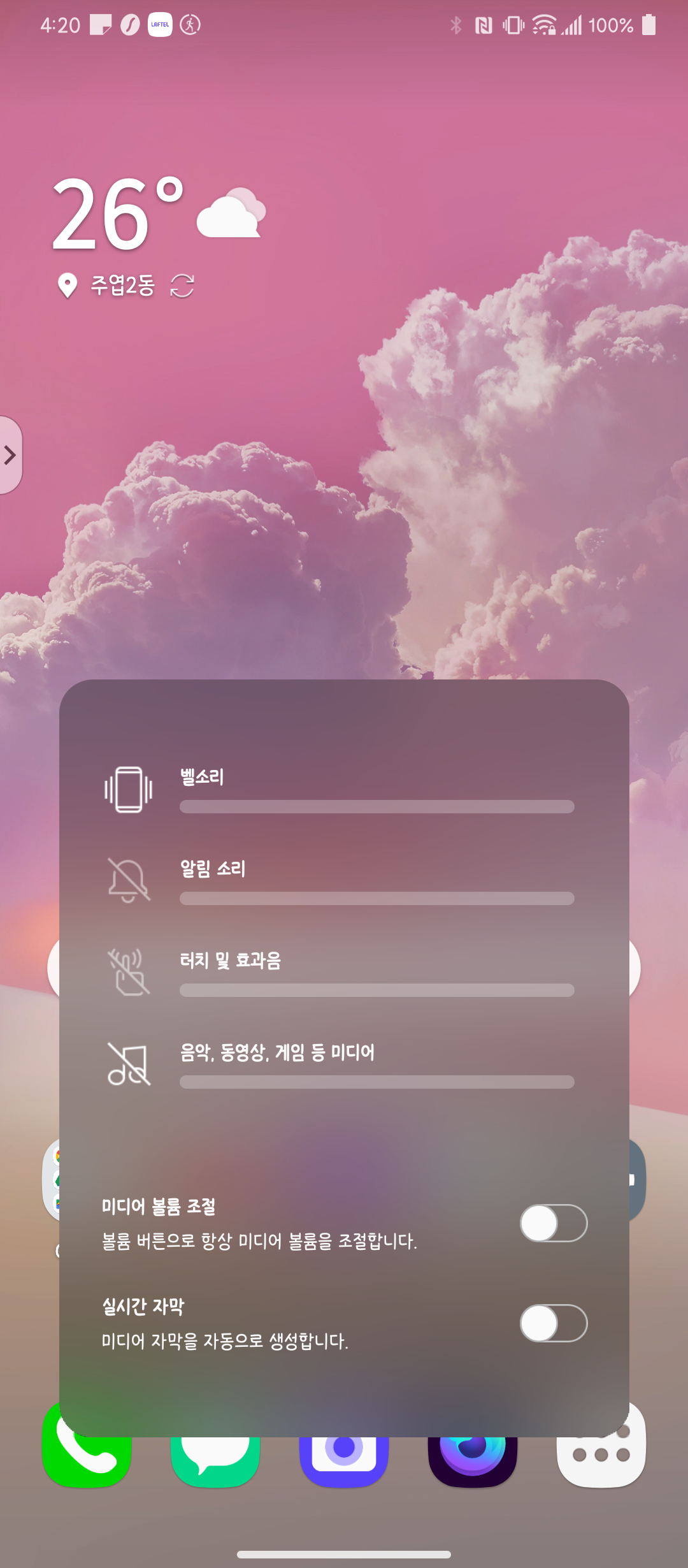 기본적으로 벨벳 UX의 블러는 G8 ThinQ의 그것대비 더 심한 블러 처리가 되어있습니다. 그래서 내심 차라리 그렇게 바뀌기를 바랬는데, 그렇지는 않고 이전의 모습을 보여주고 있었습니다. 퀵패널 배치도 변하지 않았고요.
