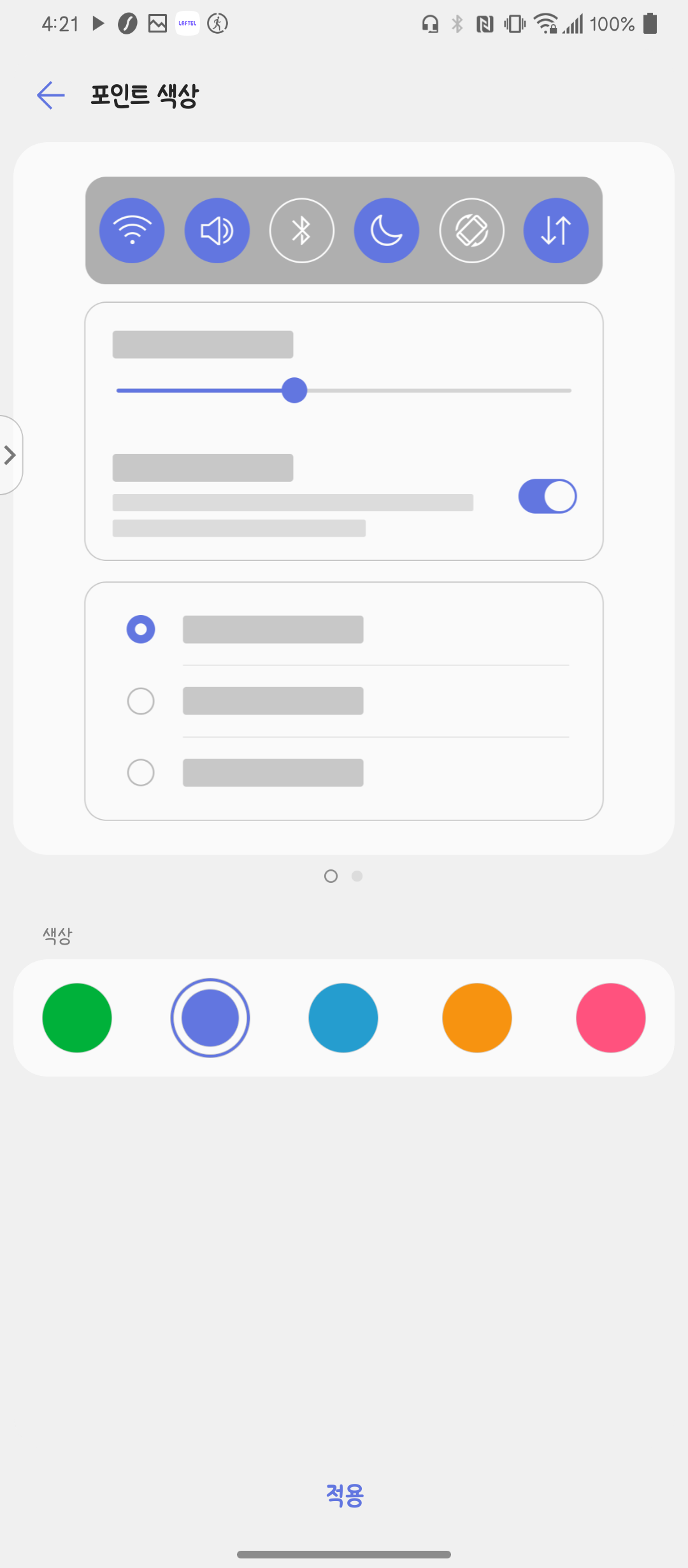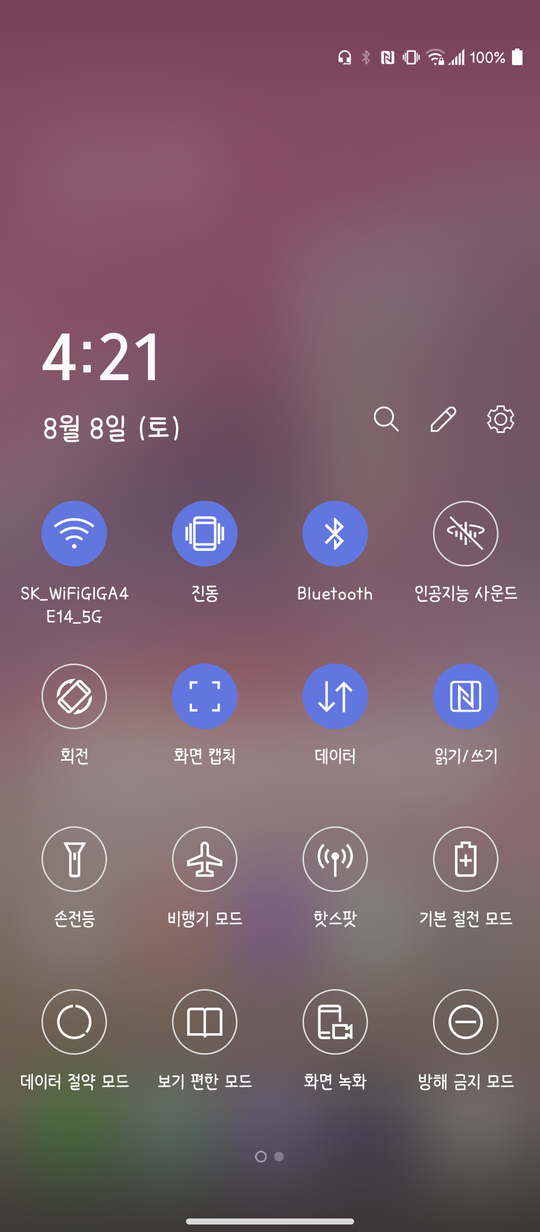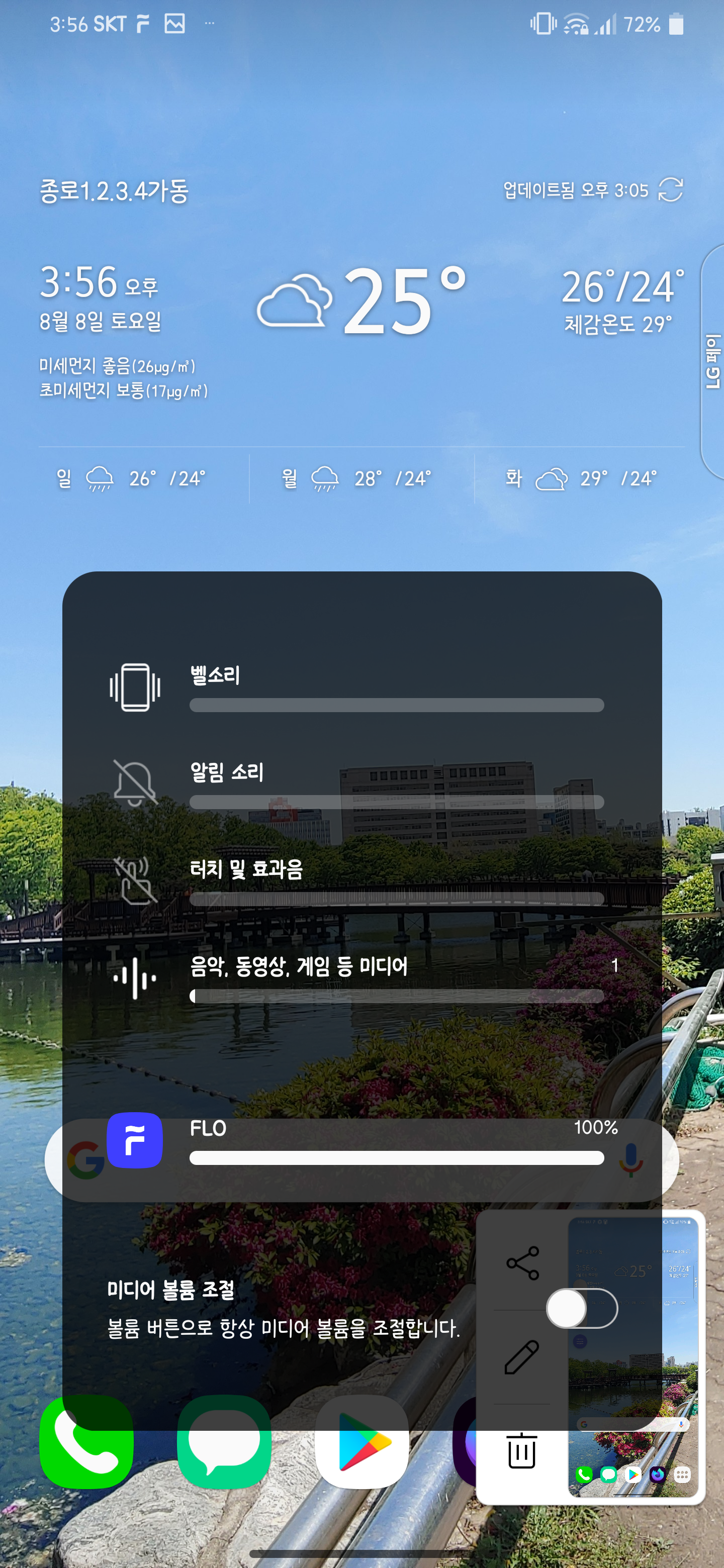 기본적으로 벨벳 UX의 블러는 G8 ThinQ의 그것대비 더 심한 블러 처리가 되어있습니다. 그래서 내심 차라리 그렇게 바뀌기를 바랬는데, 그렇지는 않고 이전의 모습을 보여주고 있었습니다. 퀵패널 배치도 변하지 않았고요.
