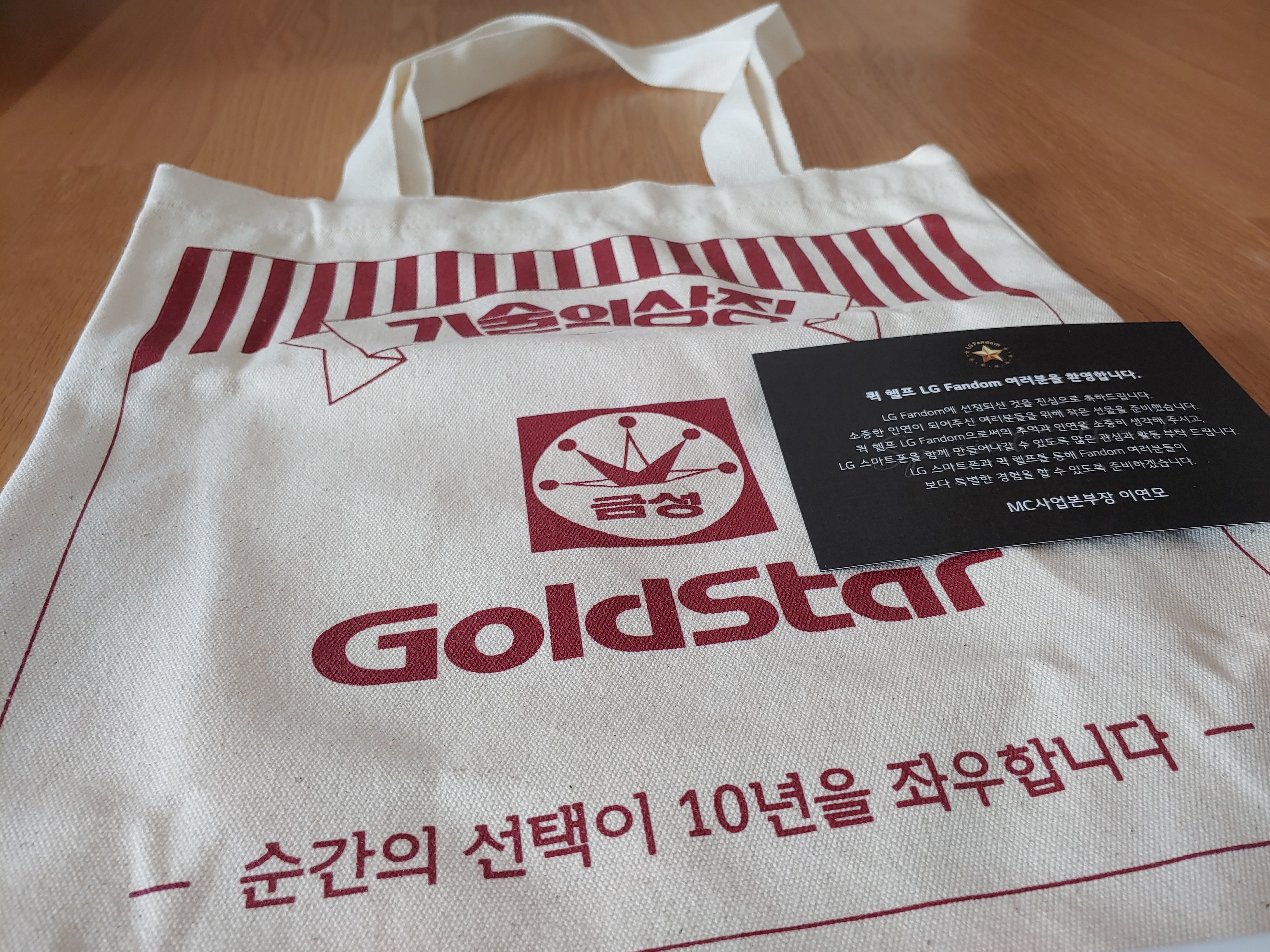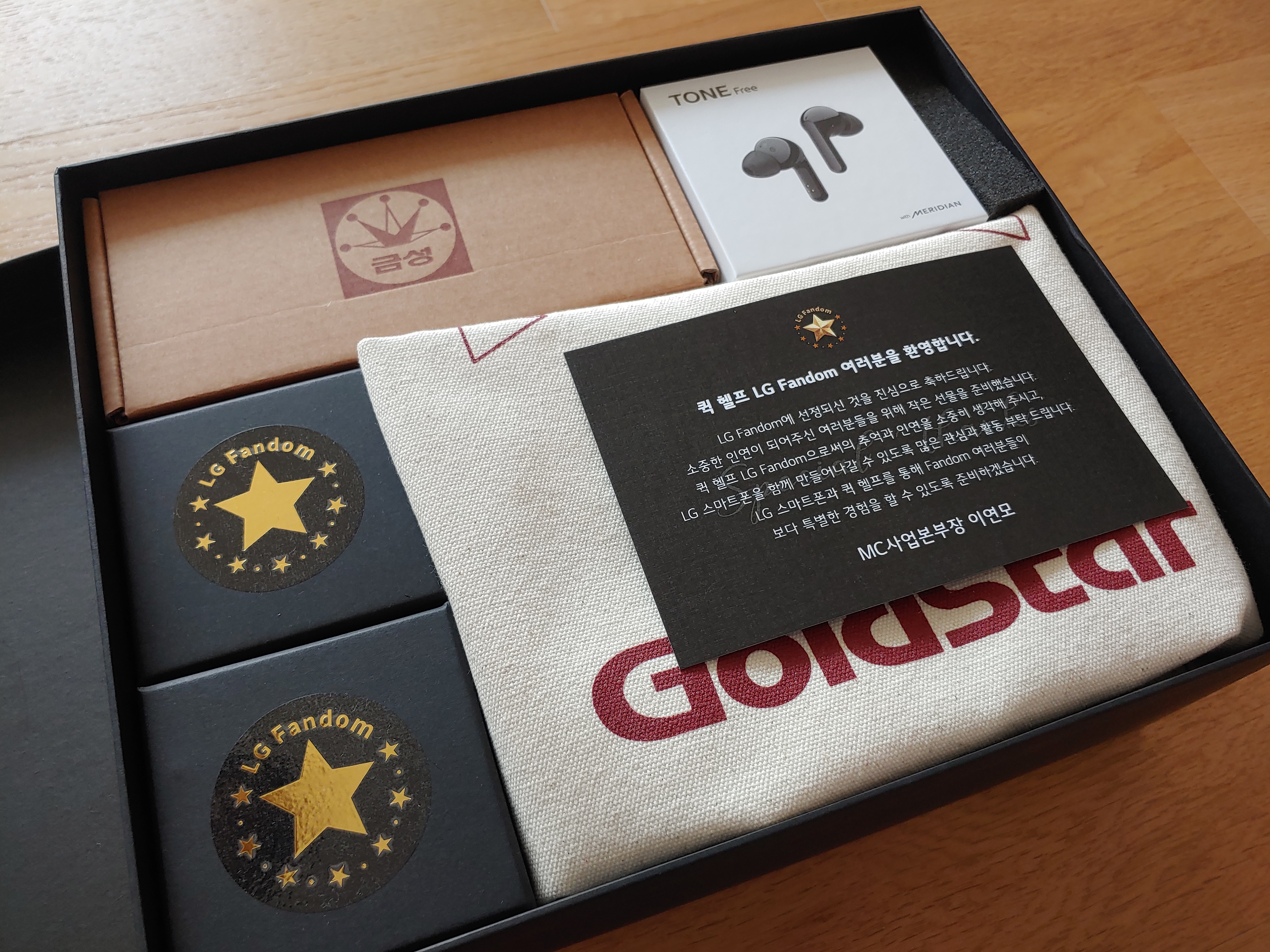 아깝지만 스티커를 떼어내 상자를 개봉하니, 행복회로를 돌렸던 TONE Free와 LG전자 레트로 에코백 + 컵 세트, LG Fandom 뱃지 등이 자리하는 것을 확인할 수 있었습니다. MC사업본부장 명의로 Fandom 환영 카드가 맨 위에 자리한 것도 Fandom이 되었다는 책임감을 느끼게 했습니다. 이번이 1기인 만큼, 앞으로 2기, 3기가 계속되기 위해서는 좋은 결과를 내야만 한다는 부담감도 밀려오더군요.
