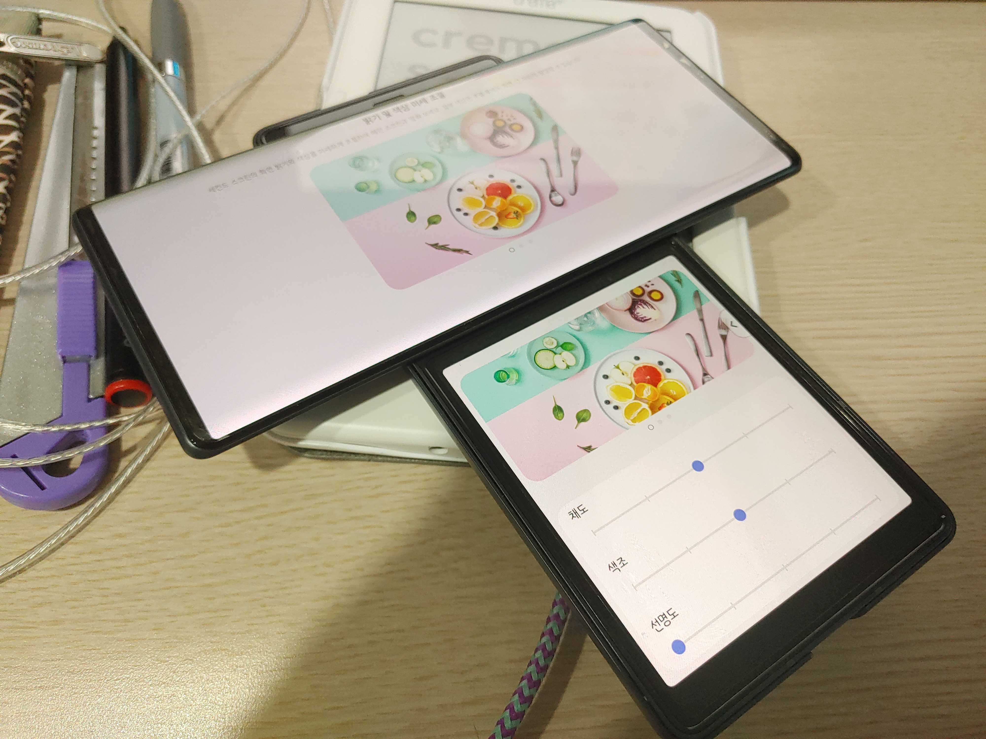 다만 딱 하나 문제가 있다면, 가로모드 미지원 방침을 고집하고 있는 앱의 경우에는 ㅜ나 ㅗ모양으로 사용할 수 없다는 건데요, 이 부분은 최근 갤럭시에서도 공개된 강제 회전 기능을 도입한다면 개선할 수 있을 것으로 보입니다. 그래도 미지원을 유지하고 있는 앱 개발사들에게는 나름의 이유가 있는 만큼(가로모드 UI 미완성, 활용성 저하 등의 문제) 가장 좋은 것은 강제 회전보다는 앱 개발사의 방침 변경 및 추가 개발이긴 합니다.