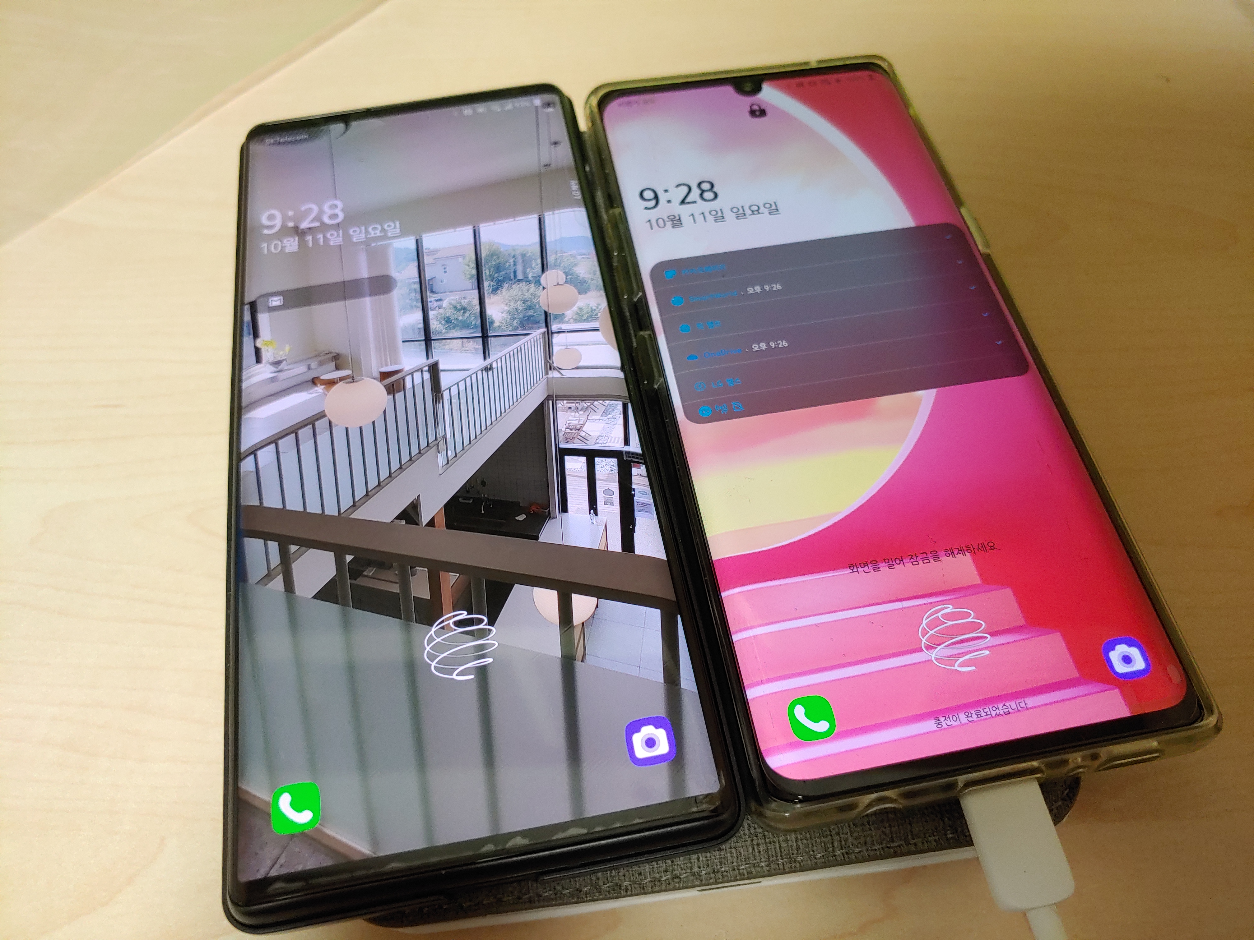 그리고 스위블 모드에서 지문인식을 조금이나마 편하게 하려고 했는지, 벨벳과 거의 같은 크기의 디스플레이임에도 불구하고 전면 지문 센서가 좀 더 상단으로 올라왔습니다. 이로 인해 UI가 변경된 부분도 있으며, 하단에 나타났던 스크린 지문인식 팝업도 중앙에 가까운 위치로 이동하였습니다.