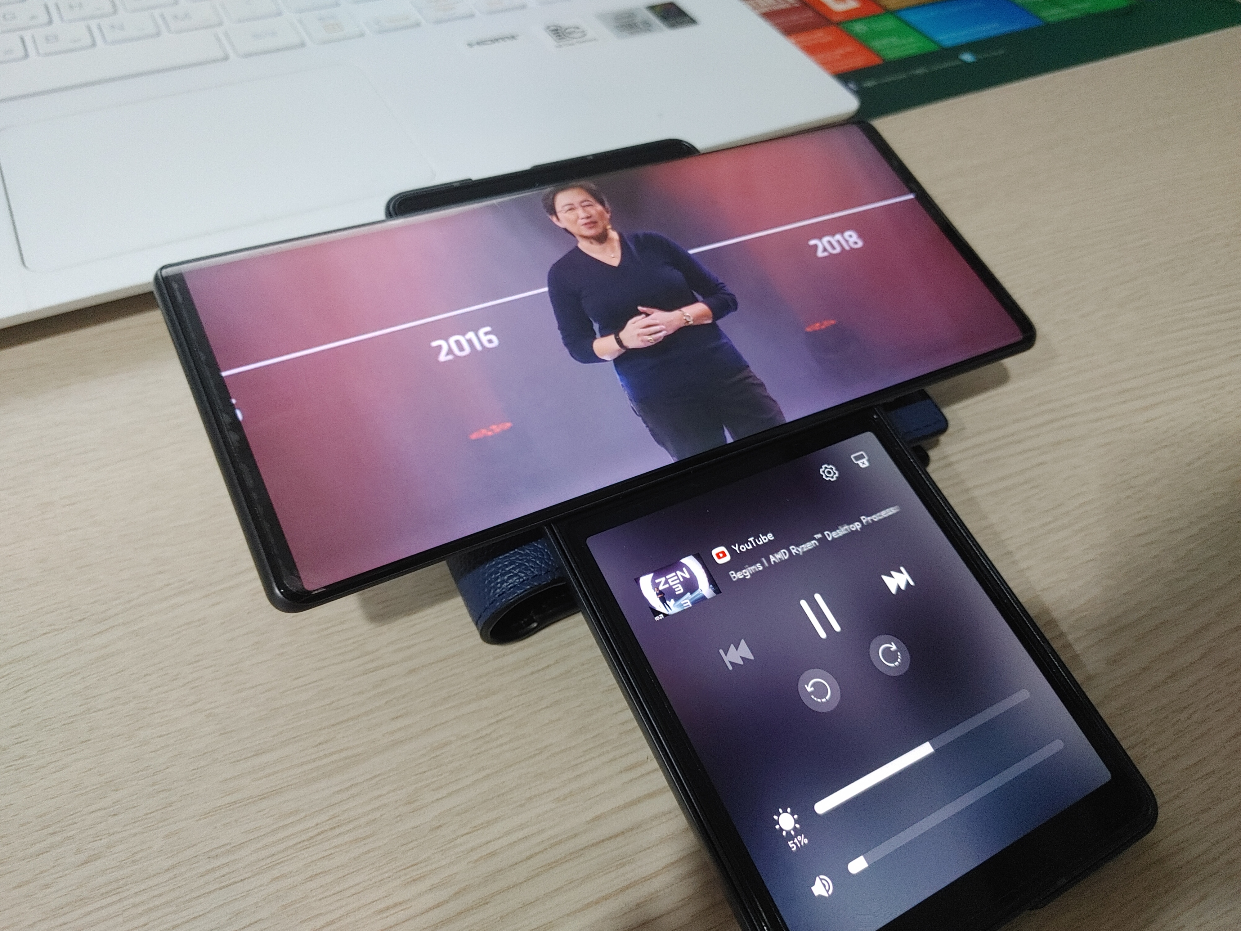 그나마 다행인 것은, G5와 달리 앱 개발자가 지원해주지 않아도 사용하는 데 큰 불편은 없다는 것입니다. 물론, 메인 스크린에서는 영상을 보면서 하단 화면에선 다음 영상을 고르는 행동을 원하는 사람이라면 극히 일부 앱을 제외하고 지원하지 않는 기능이라 아쉬움이 깊게 남을 법도 합니다만, 듀얼 스크린과 달리 세컨드 스크린의 생김새가 키보드를 사용하기에 편하고 실제로도 키보드 전용 화면으로 쓸 수도 있어 앱을 두 개 사용하거나 키보드가 필요한 게임에서 잠깐씩 윙을 돌려서 제품을 사용하니 '왜 돌리는 것이 편한지' 나름 설득되는 부분들이 보였습니다.