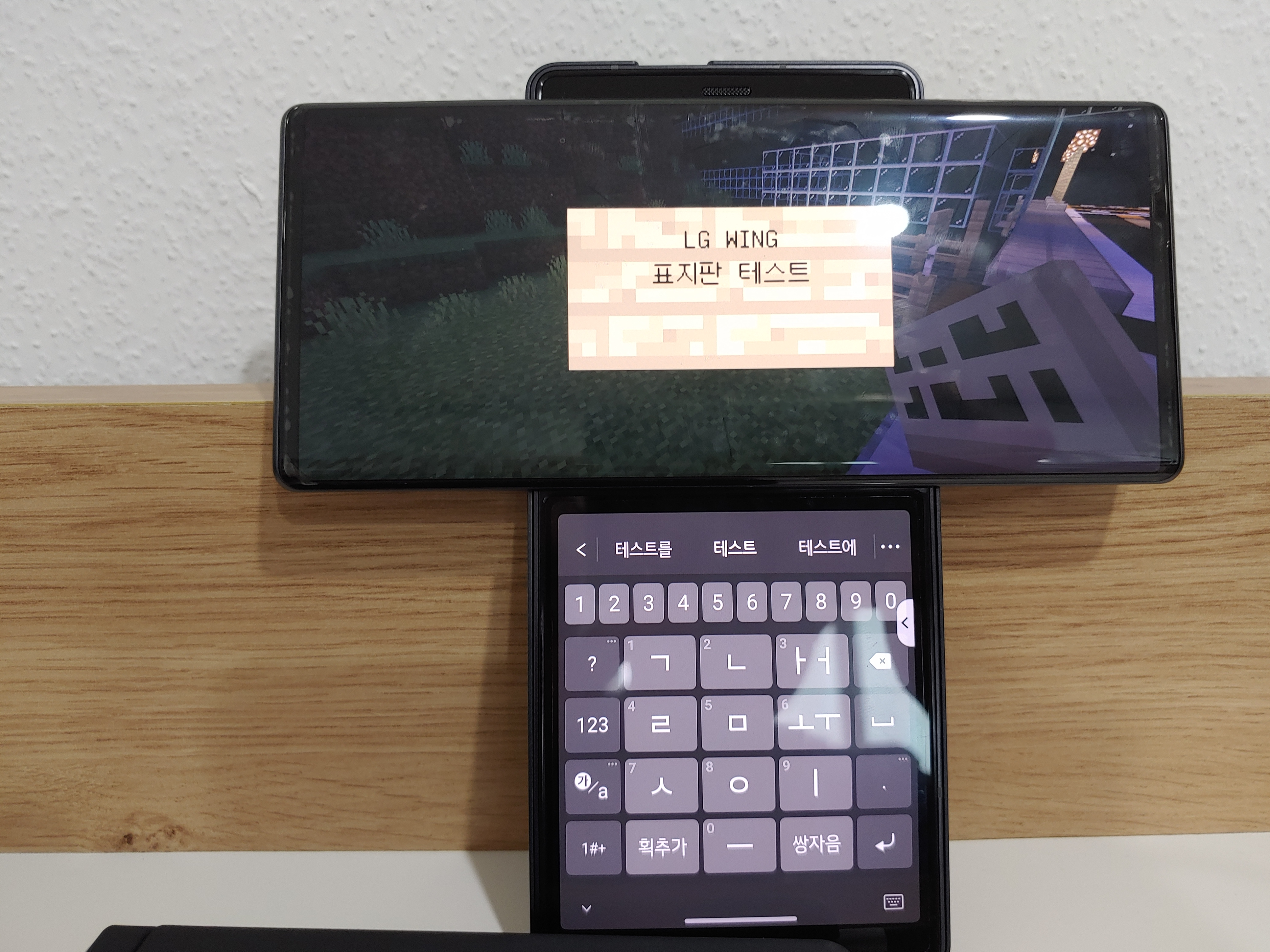 그리고 메인 스크린을 터치해야 '완료'되는 몇몇 게임, 앱들에서 생각보다 편하지 않음을 토로하시는 분들도 종종 계신데, 그렇다고는 해도 세컨드 스크린에서 사용하는 키보드의 크키가 세로모드에서 사용하는 그것과 거의 비슷한 관계로 일반 바형 스마트폰보다는 빠른 속도로, 오타율을 낮춘 상태로 사용할 수 있었습니다. 팝업 키보드와는 조금 다른 것이, 물리적으로도 작다보니 손을 무리하게 뻗을 필요가 없더군요. 같은 이유로 키보드를 자주 사용해야 하는 오피스 앱(한컴오피스, MS 오피스, 폴라리스 오피스, WPS 오피스 등)에서도 가로모드에서 문서를 좀 더 크게 보면서 키보드에 방해받지 않고 문서 작성이 가능하여 LG가 이런 앱들과 제휴하여 각종 메뉴를 세컨드 스크린에 띄우는 방식으로 활용성을 높이면 어땠을까 싶은 생각도 순간 들었습니다.