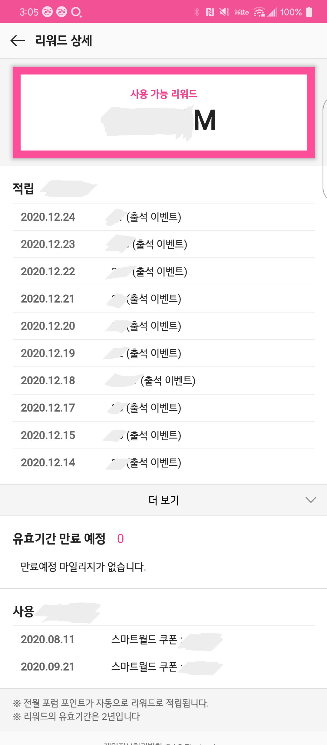 - 비정기적으로 개최되는 출석 이벤트 등 이벤트를 통한 포인트 적립