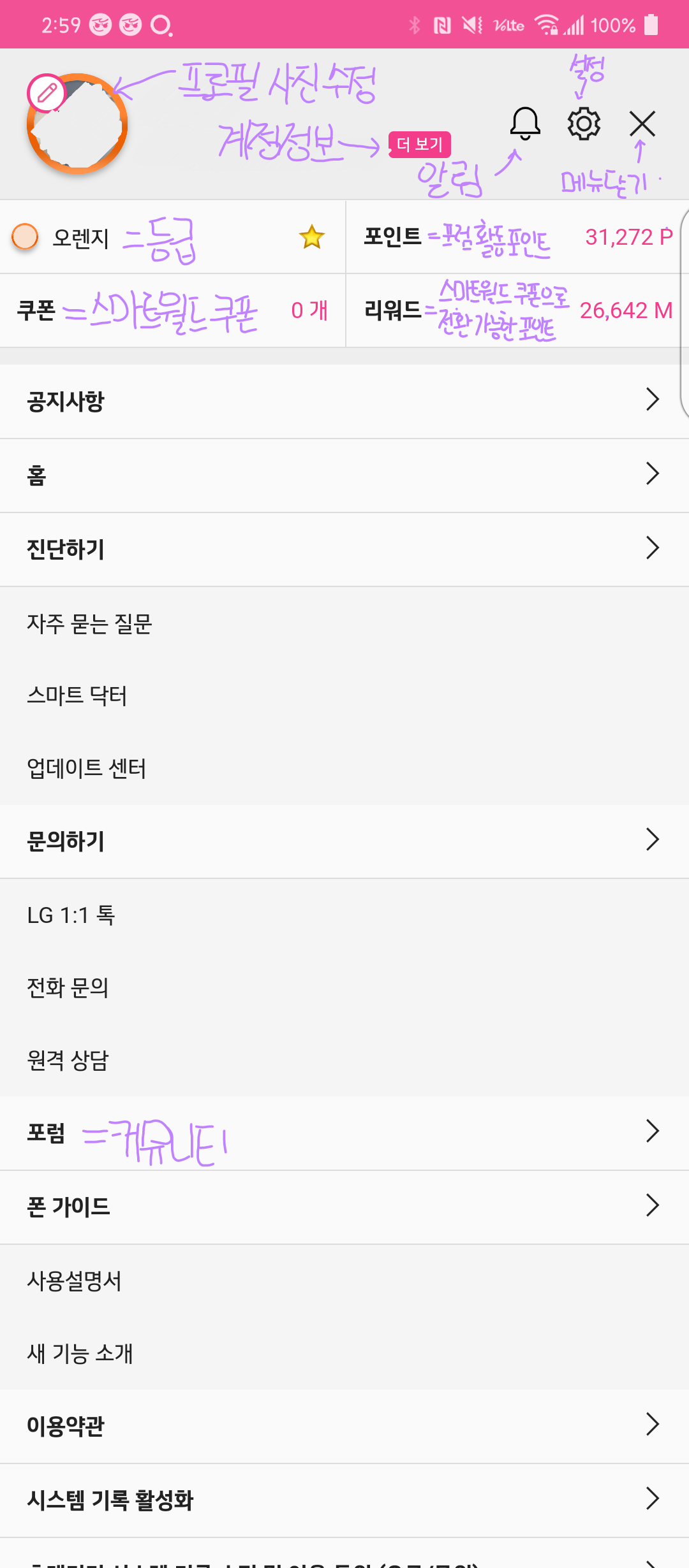 - LG에서 제공하는 퀵 헬프 푸시 알림 유지 및 알림으로 온 내용의 열람 등