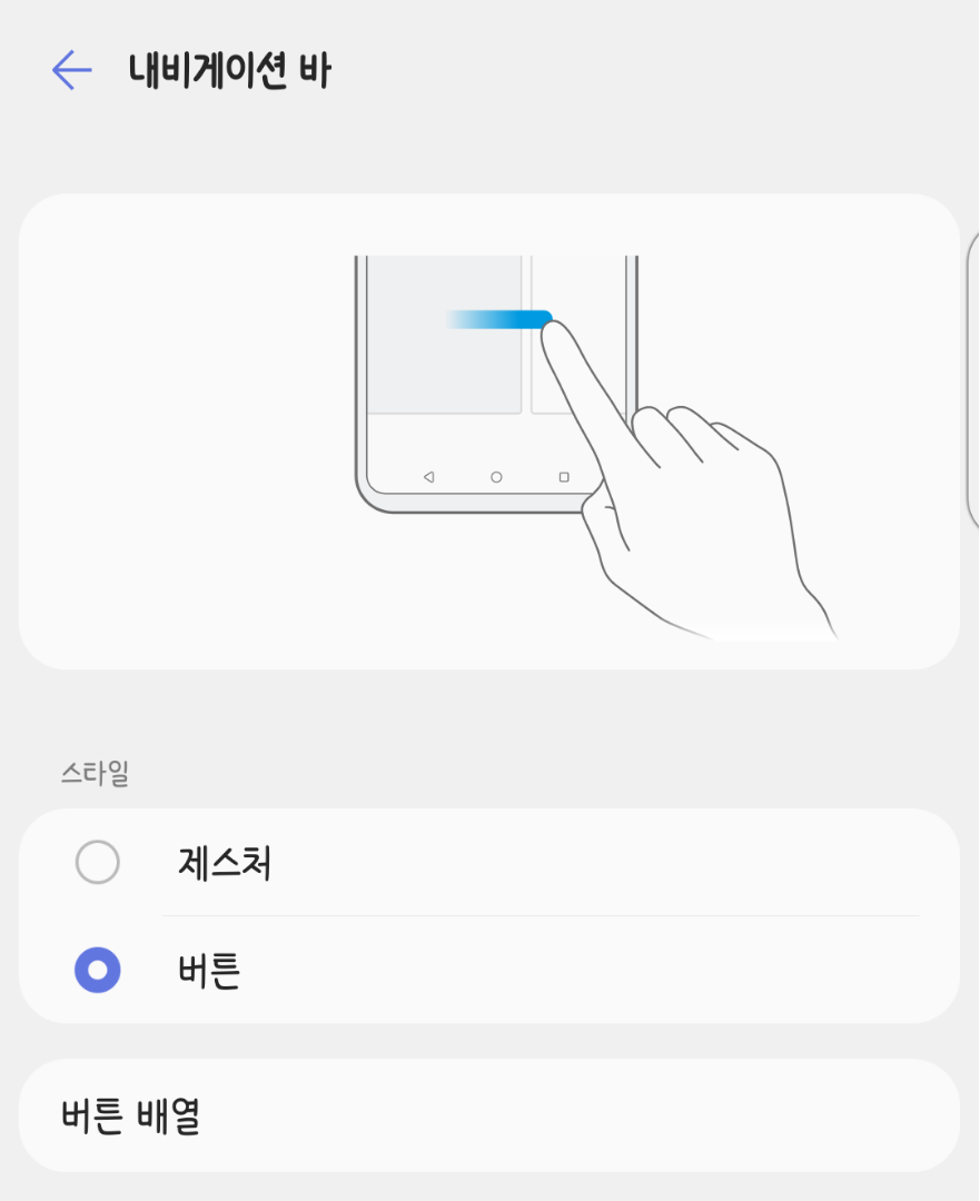 - 제스처 및 버튼: 뒤로가기 버튼을 왼쪽 / 오른쪽에 배치 가능