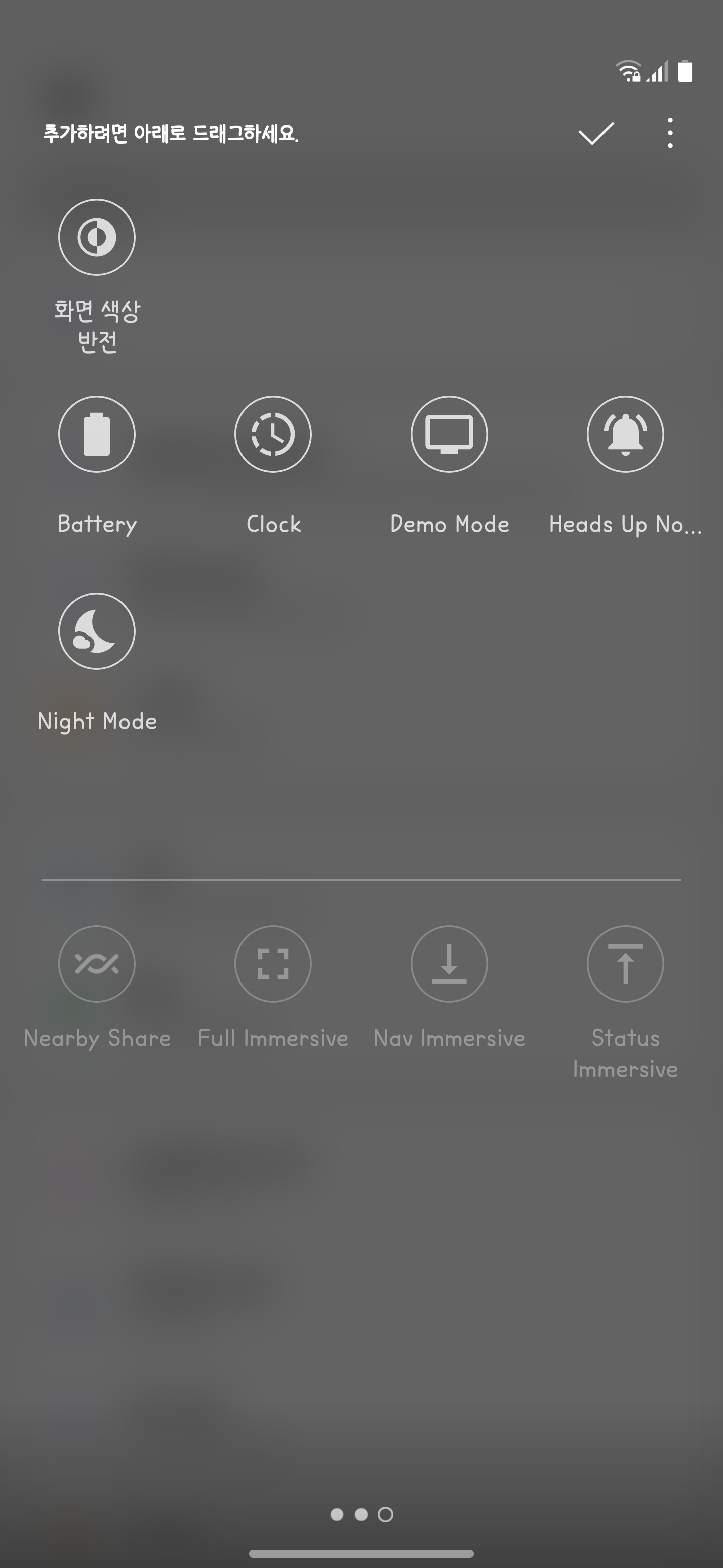 ⚠ 위 사진 중 'Camera', 'Record Video', 'Selfie', 'Full Immersive', 'Nav Immersive', 'Status Immersive', 'Battery', 'Clock', 'Demo Mode', 'Heads Up Notification', 'Night Mode' 및 'Block Screen'은 LG전자에서 제공하는 기능이 아닙니다.