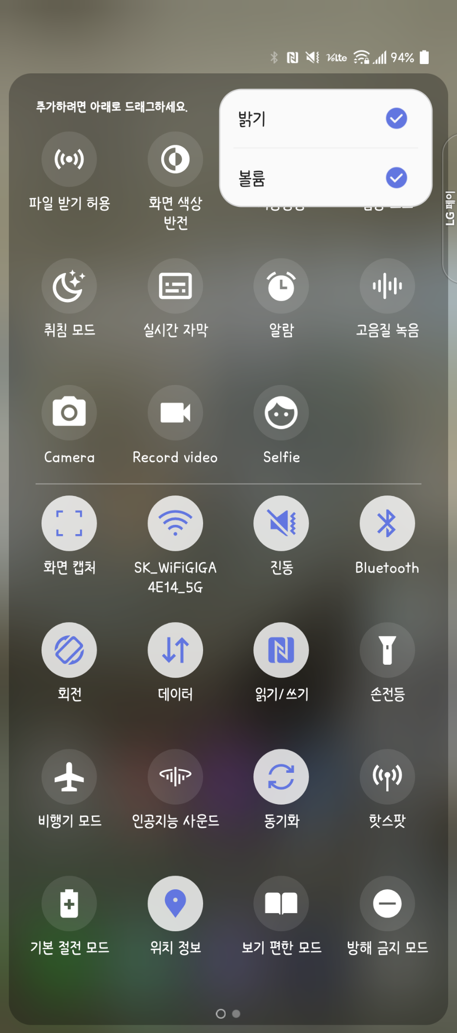 알림창을 두 번 내리면 퀵 패널(혹은 공식 명칭 '빠른 설정')이 나타나는데요, 여기서 '연필' 모양을 눌러 빠른 설정 영역에 둘 항목을 정하거나 알림창을 한 번 내렸을 때 나타나는 '밝기' 및 '음량' 조절 바를 추가할 수 있습니다.
