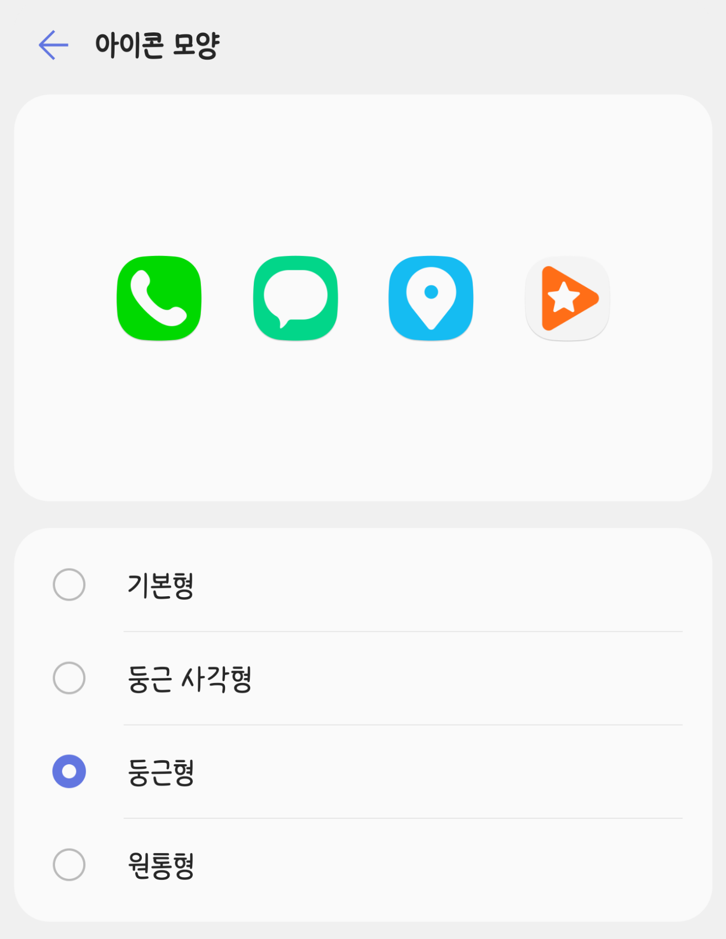 '아이콘 모양'은 안드로이드 표준인 Adaptive Icon에 따른 아이콘 형태 변경을 지원하는 기능입니다. 과거에는 아이콘팩에서 직접 아이콘을 골라 변경하는 기능도 지원했었으나, 버전이 올라가면서 더 이상 지원하지 않게 된 상황입니다.