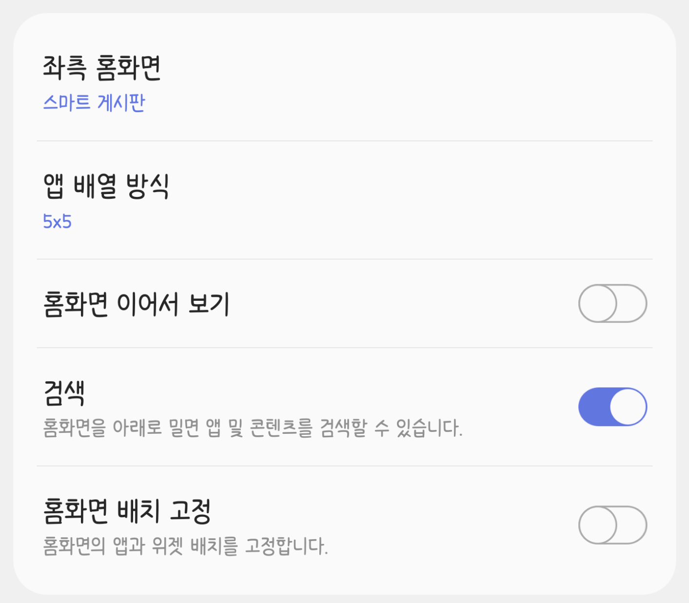 홈화면의 앱이나 위젯의 위치가 조작 실수로 변경되거나 삭제되지 않도록 막아주는 '홈화면 배치 고정'은 다행히 살아남았습니다.