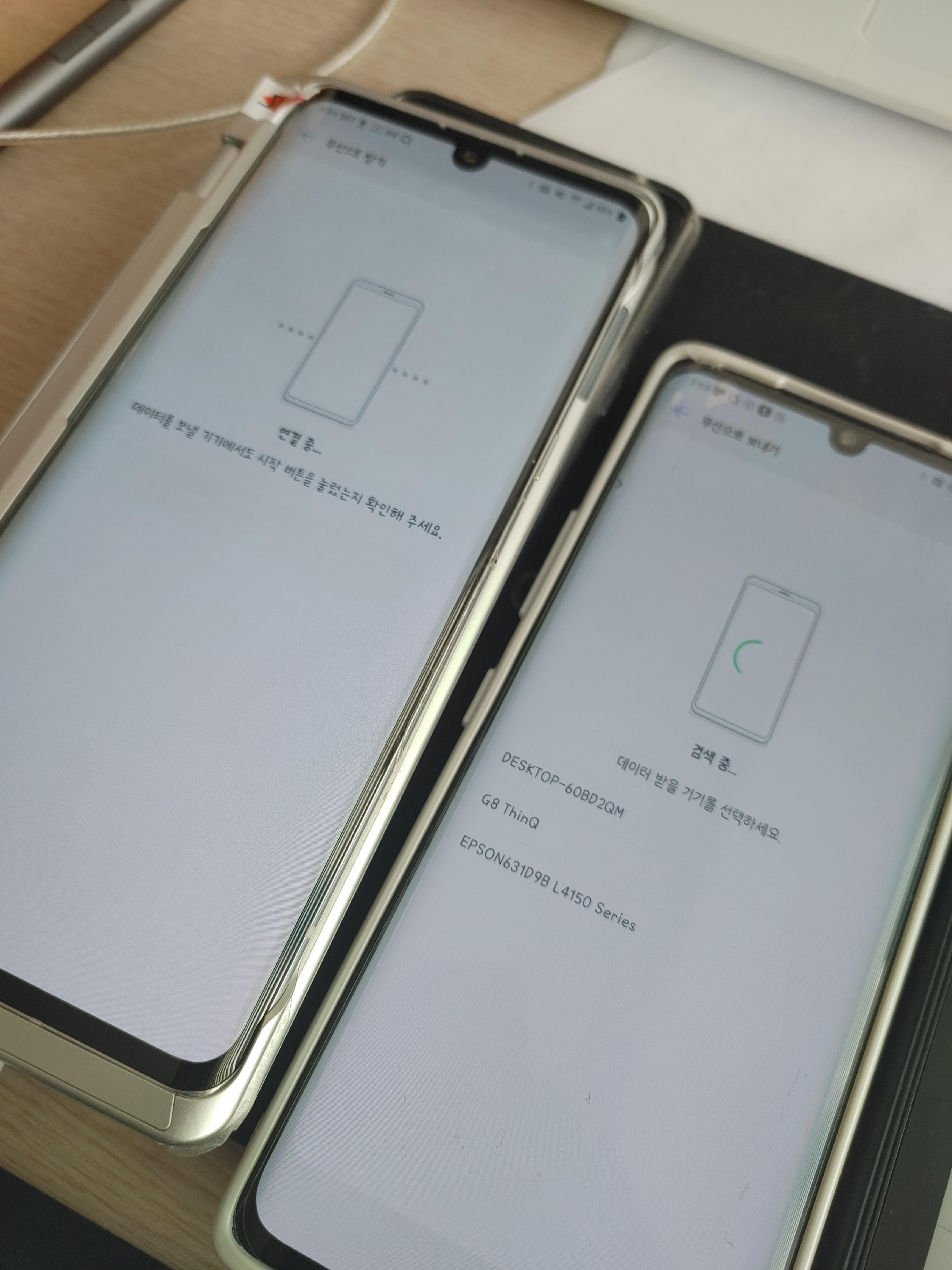 - 무선 (일시적으로 두 기기의 WiFi 연결을 끊고 WiFi Direct 기능으로 두 기기를 직접 연결) - 간편하나 안정성 최하