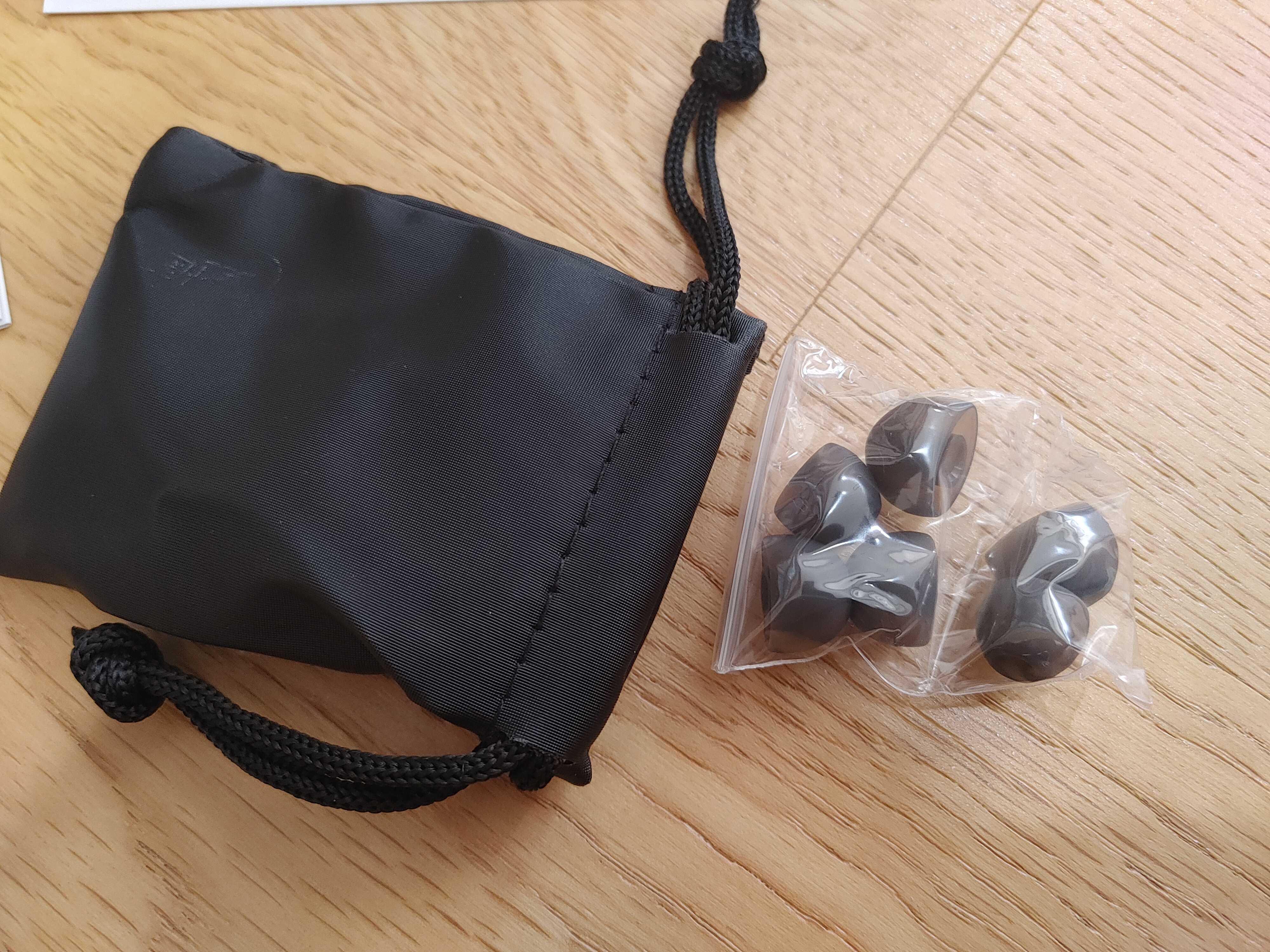 파우치 안에는 기본 이어팁이 들어 있습니다. 같은 중국 소재 음향 업체인 원모어와는 달리 5만원대 이어폰임에도 파우치가 들어간 대신 이어팁이 번들 이어폰처럼 작은 지퍼백에 담겨 있었습니다.