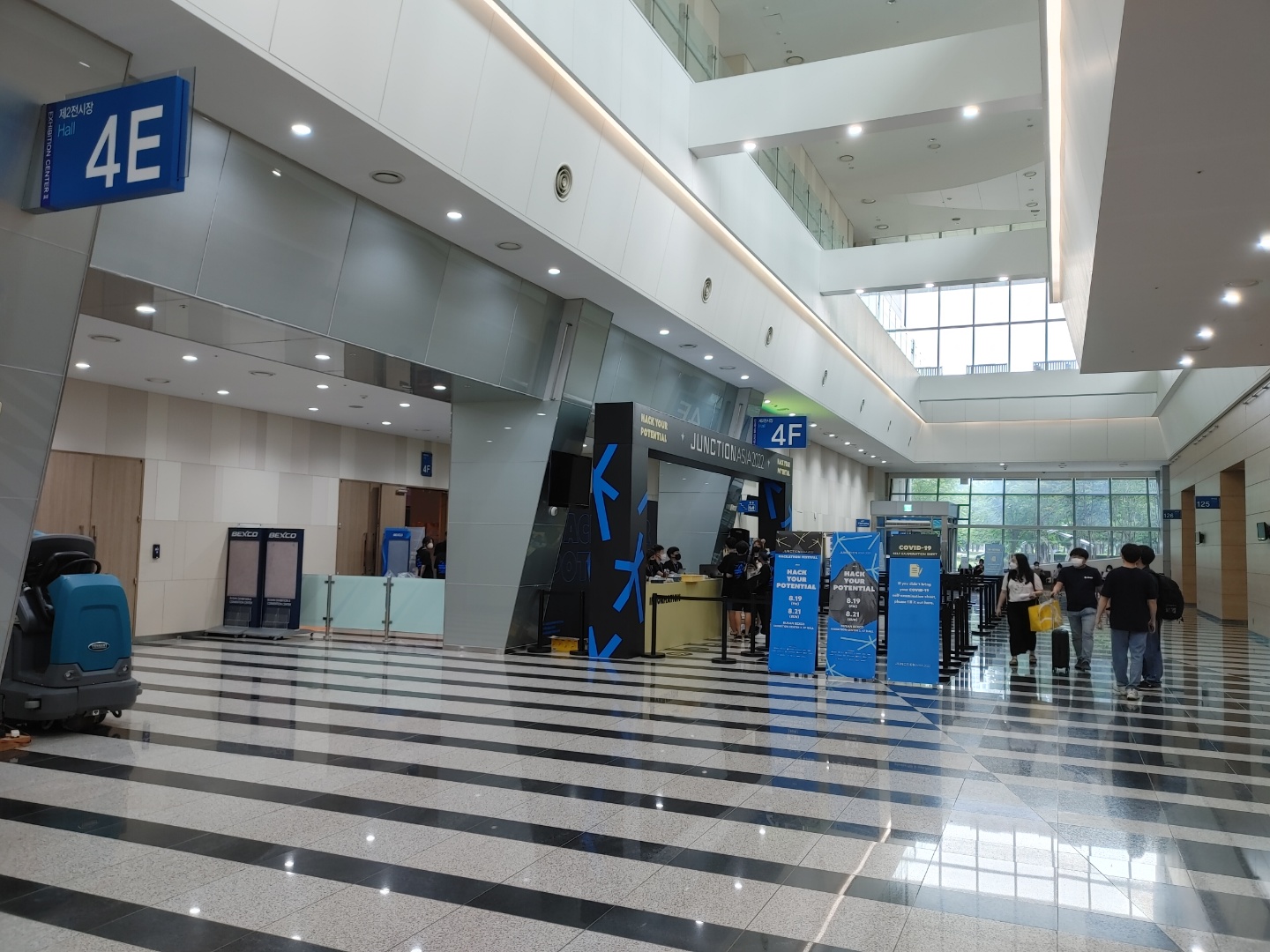 그러나 생각보다 저녁을 빨리 마치기도 했고, 입장 시간에 딱 맞춰 가면 사람이 너무 많아 미리 이것저것 준비하는데 많은 시간이 소요될 것으로 예상되어 조금 일찍 도착하였는데 아무래도 제2전시장이라서 그런지 식당이나 카페 등 편의시설은 제1전시장 위주로 구성되어 있어 잠시 머물 장소가 부족했습니다. 제2전시장에 있던 작은 카페의 경우 입장 시간이 거의 다 되었을 때는 영업 마감 시간이어서 머물 수도 없었고, 따라서 어쩔 수 없이 다른 전시장 앞 의자에 앉아서 입장 여부를 예의주시하다가 이동했습니다. 덕분에 좀 기다리기는 했지만 숨을 돌릴 시간은 있었습니다.