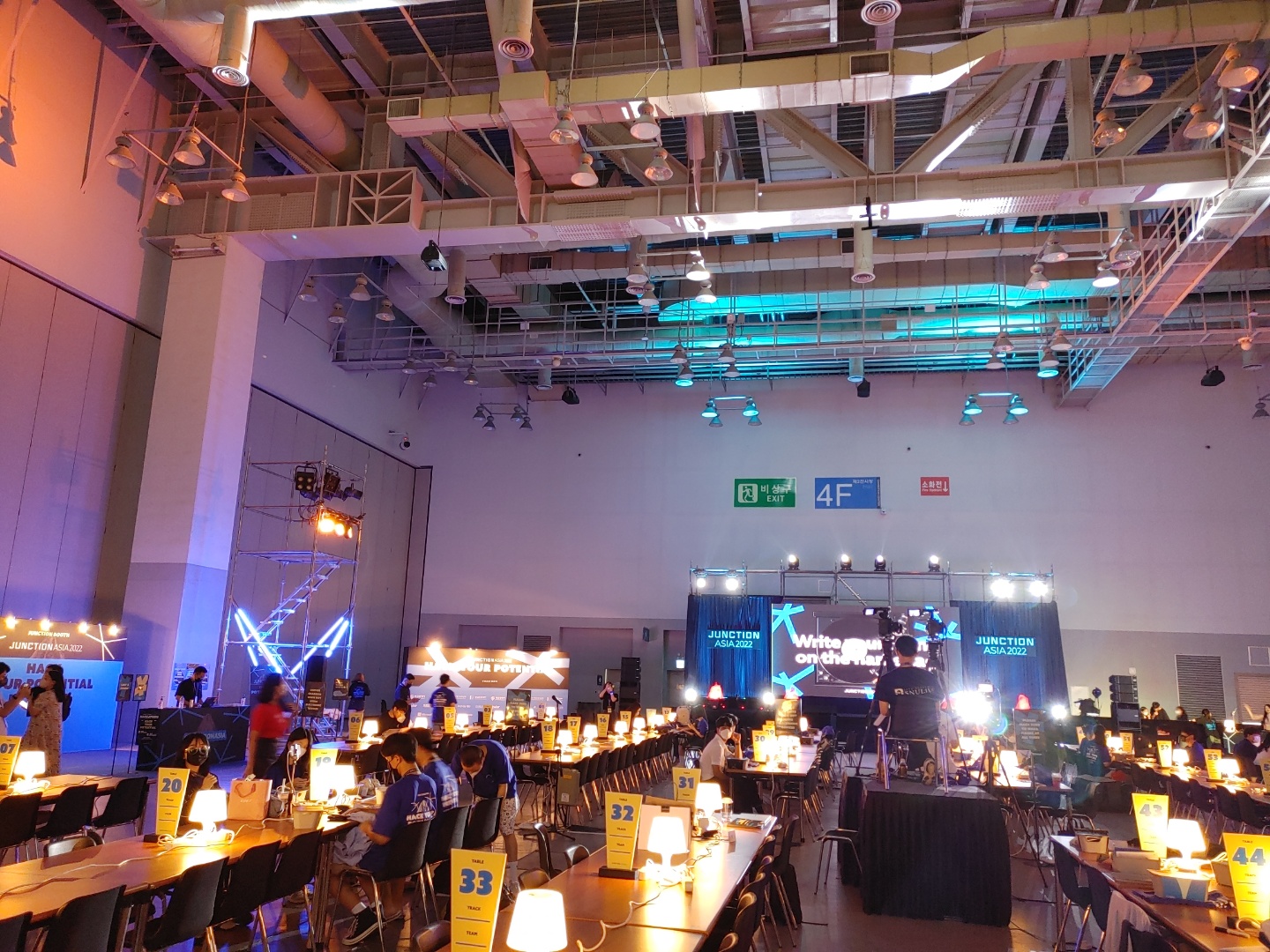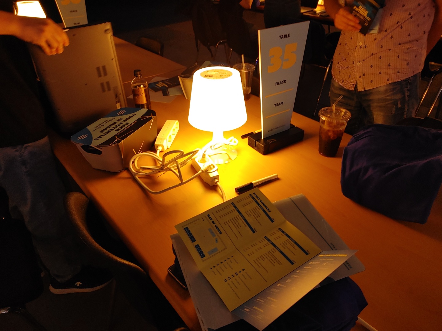 처음 입장했을 때, 코딩이 이뤄지는 장소 뒷편으로 푹 쉴 수 있는 공간이 있어 독특하다고 느꼈습니다. 호텔이 지근거리에 제공되고 있음에도 불구하고 이용할 수 없을 정도로 바쁜 팀을 위한 것만 같더군요. 이래저래 통일된 모습으로 잘 준비가 되어있다고 생각했지만 아쉬운 점도 있었습니다. 멀티탭이 3구용이어서 팀원 전원이 이용하기에는 부족했다는 점과, 행사에서 제공된 무선랜의 속도가 느려 거의 이튿날 정오까지는 핫스팟을 썼어야 했다는 점입니다. 그 뒤에는 물론 무선랜도 교체가 되었고 멀티탭도 대략 6구 정도로 바뀌어 이용에 불편함이 없었지만, 이 또한 다음 행사에서는 개선되기를 기대하봅니다. 아무리 JunctionX Seoul을 개최했던 팀이라고 해도, Asia 행사는 이번이 1회차니까요.
