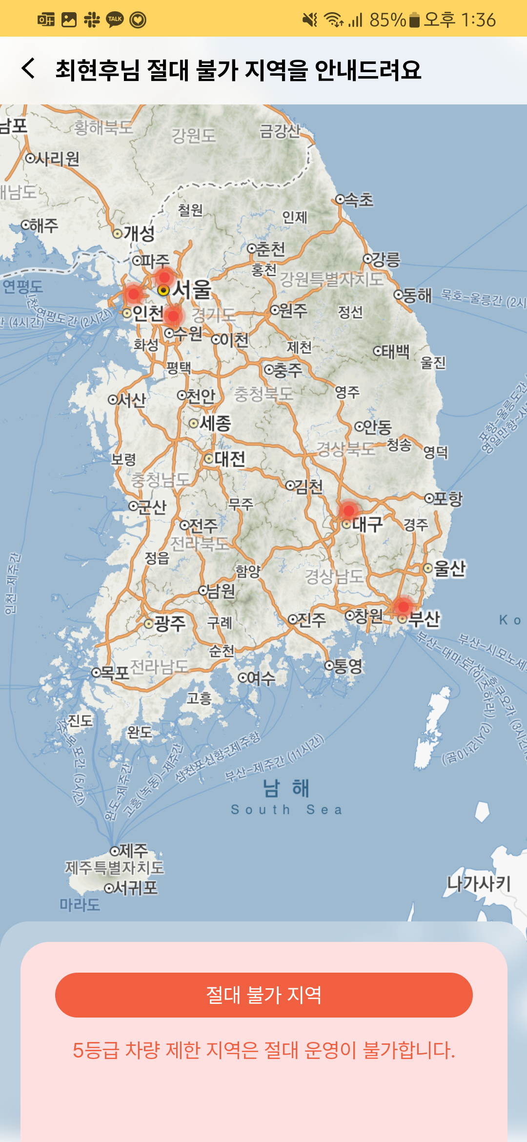 - 여담으로 지도 구현할 때도 제주도까지 보일 수 있도록 특정한 위치를 중점으로 잡는데 공을 들였단 사실도 은근슬쩍 자랑하고 싶습니다. 생각보다 남부 지방을 중심으로 잡아야만 흔히 보는 대한민국 지도 형태가 된다는 사실을 이때 알았습니다. [본문으로]