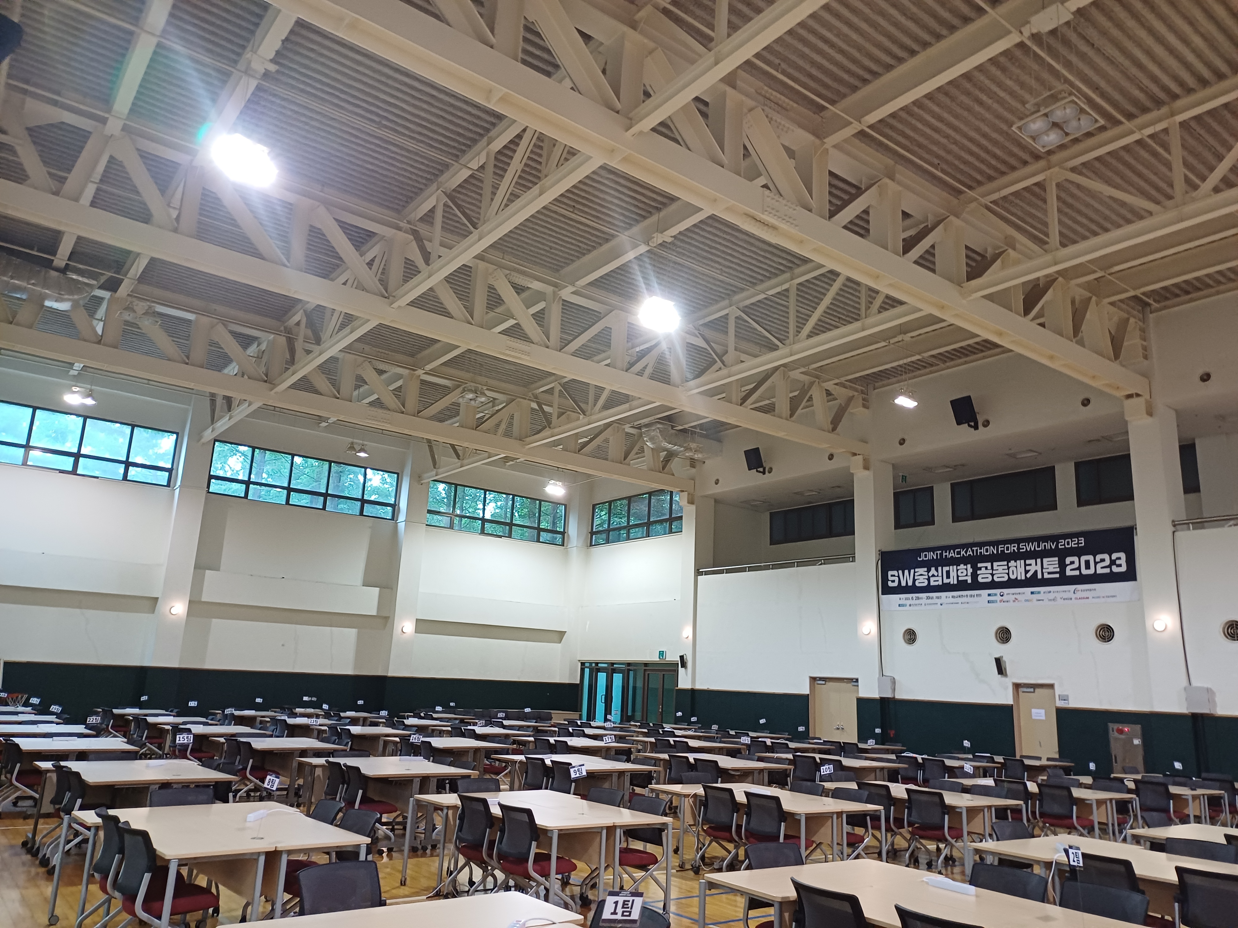 어찌어찌 도착하고 나서 앉은 옆자리는 우연히 같은 학교, 같은 학과 학생이었습니다. 심지어 나중에 알았지만 기숙사 룸메이트이기도 해서, 다행히 다니는 동안 편안하게 지낼 수 있었습니다. 다만 이와 별개로 아무래도 너무 빡빡하게 짜여진 일정으로 인해 자꾸 미뤄지는 과정이 불안에 불안을 낳았습니다. 여기서 해커톤을 하는 것은 아니라고 했지만 벌써부터 대강당의 인터넷은 느리고, 개회사에서도 일정 문제로 협의회장님께서 온라인으로 참석하시는 등 오랜만에 오프라인으로 개최된 점이 여러 혼란을 낳는 듯 했습니다.