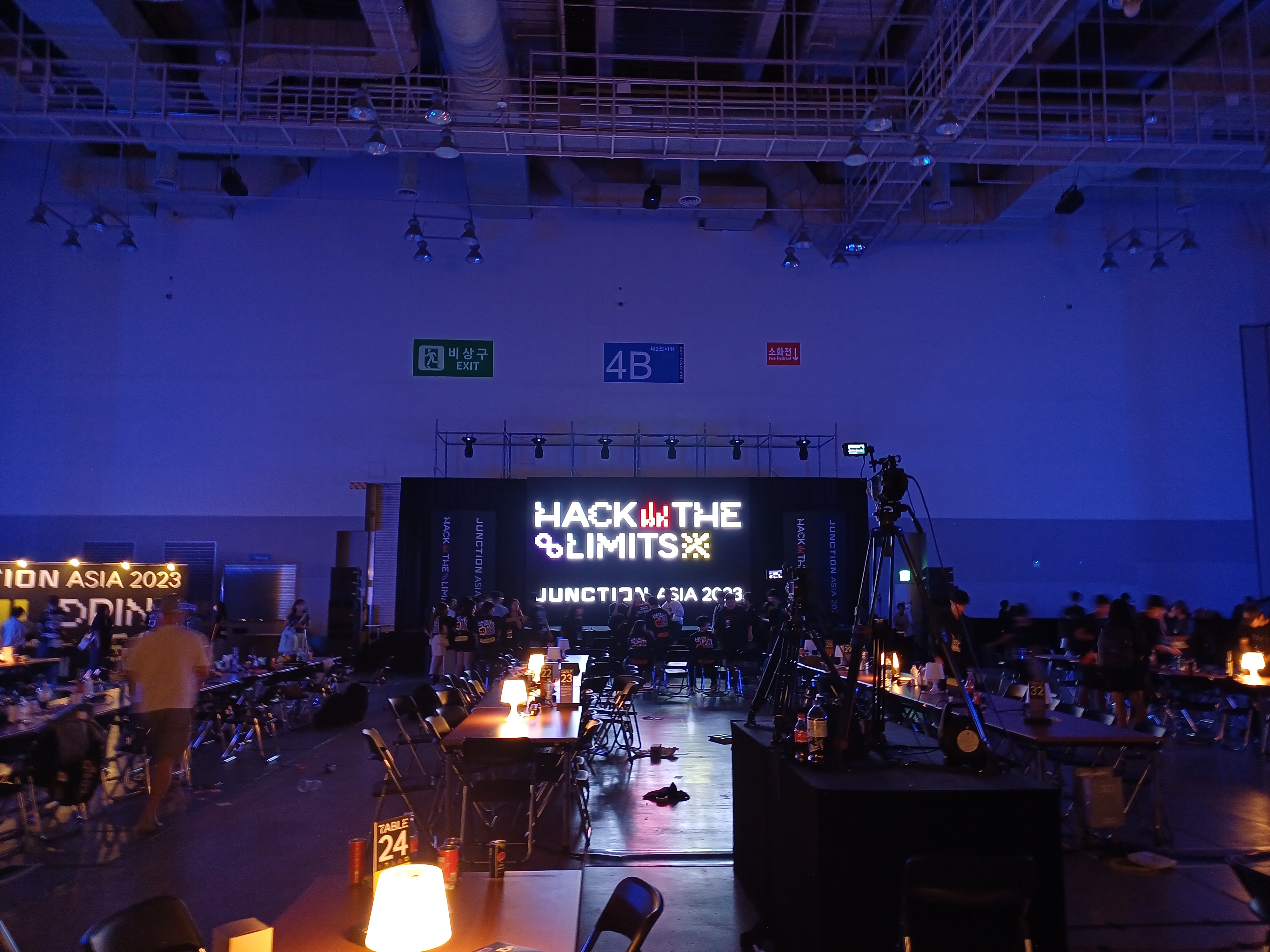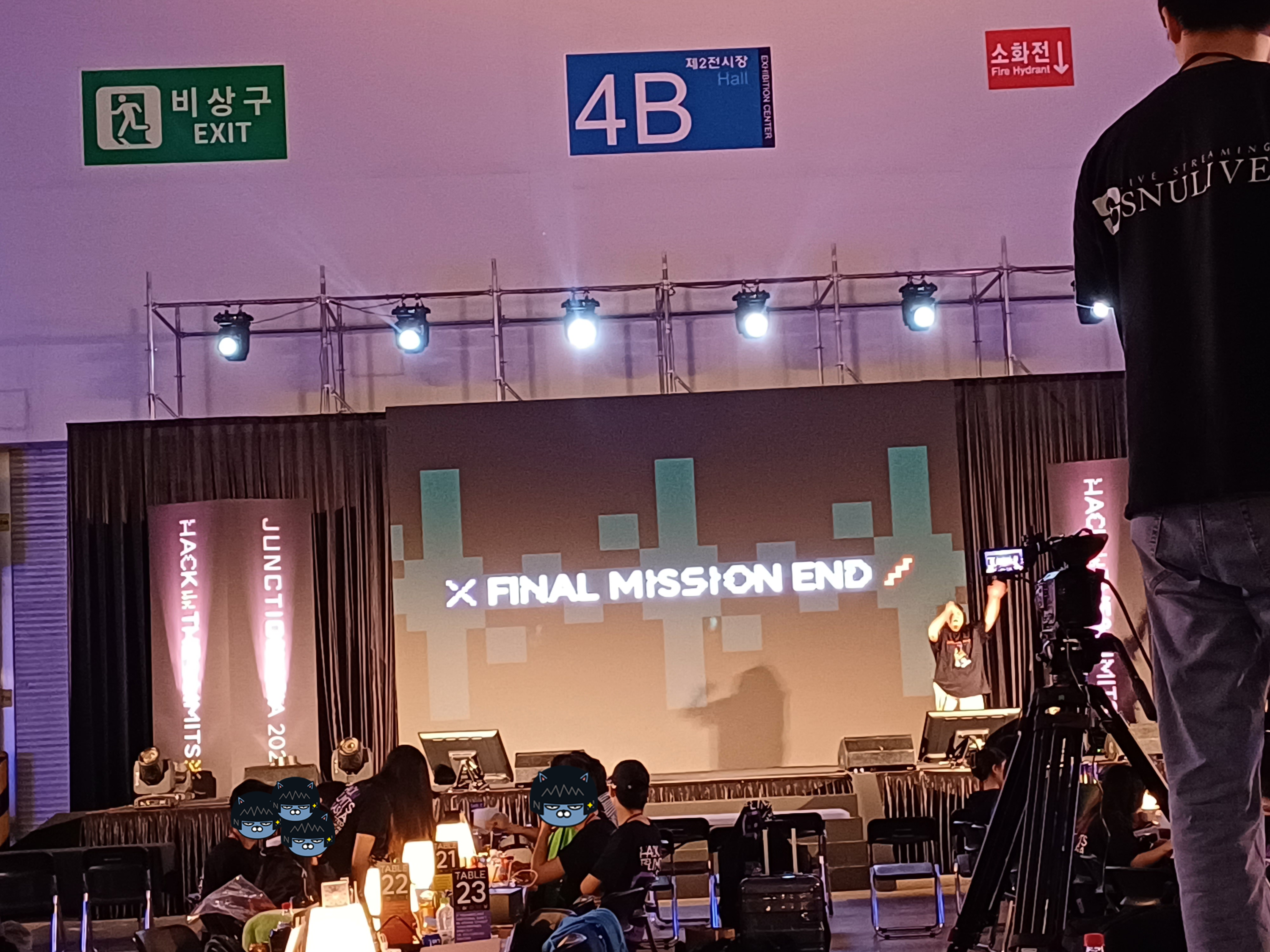 그러나 조금 다른 점이 있다면 2022년에는 행사장 정면 왼편에 세 개의 트랙 부스가 있었고, 행사장 입구 방향의 휴식 공간이 완전히 열려 있었는데 2023년에는 휴식 공간에 방처럼 파티션이 추가되었고, 그 파티션 앞으로 트랙 부스가 놓였습니다. 기존보다 트랙 부스가 더 잘 보여서 여쭙기 수월한 점이 좋아보였으며, 호텔이 제공되지 않는 올해 행사의 문제를 완화하기 위한 노력이 보였습니다. 특히 JUNCTION ASIA 행사는 올해도 트랙 부스에 계신 분들이 곧 심사위원이기에, 주제에 대한 힌트를 자주 얻으러 갈수록 이점이 있는 만큼 개선된 배치 방법이라고 느껴졌어요.