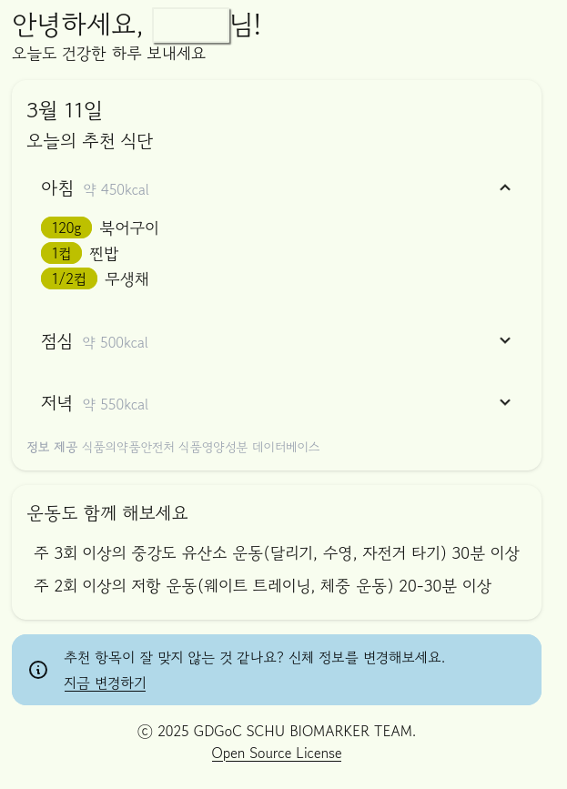 Solutions Challenge 과정은 저의 부족이 컸지만 교내 역량이나 그 밖의 한계에 따른 아쉬움도 다소 있었습니다. 이때 AI 부문 멤버 수에 비해 프론트엔드 희망자가 부족하여 부득이하게 기존 역량을 살려 프론트엔드 및 전체 서비스 배포 작업에 참가하였는데, 백엔드 개발자 두 명의 작업량을 프론트엔드 개발자 한 명이 대응하는 구성으로 인해 약간의 부하가 있었습니다.