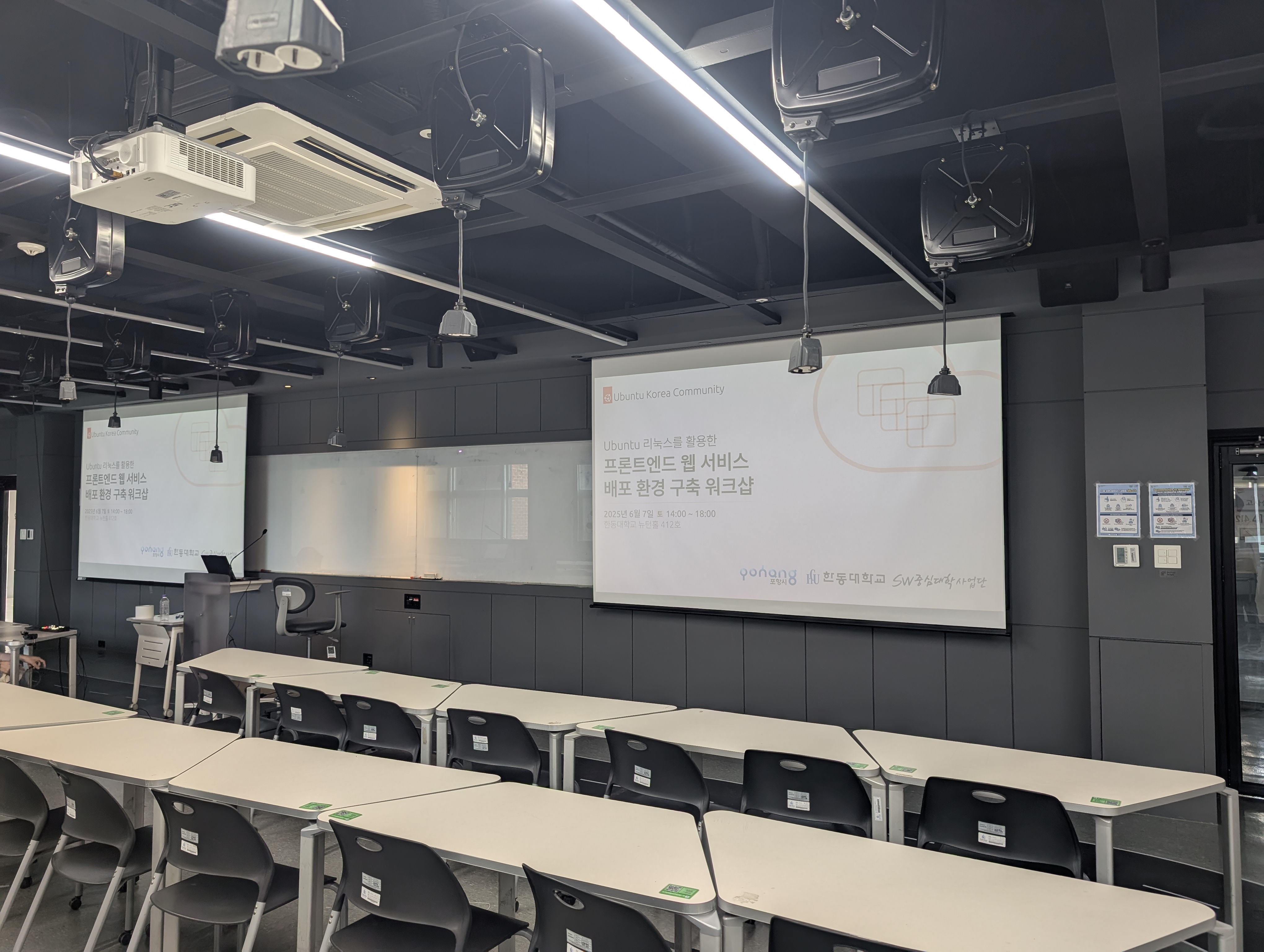 와중에 우분투한국커뮤니티에서 추진 중인 지역 행사 활성화 차원에서 경상북도 포항에 위치한 한동대학교에 방문해 실습형 워크샵을 진행했습니다. 기말고사 며칠 전이라는 아슬아슬한 상황에 먼 거리를 달려 우리 학교도 아닌 다른 학교에 가서 강의 비슷한 것을 한다는 일이 부담스럽기도 했지만, 한편으로 본래 3월 즈음 하기로 했던 일이 협의가 늦어져 6월에 하게 된 터라 늦어졌어도 어떻게든 성사시켜 주신 분들께 감사했어요. 결과적으로 2026년 현재는 잠시 추진 동력을 잃어 활동이 종료되었지만, 그때를 돌이켜 보면 주말에 외부인에게 학교를 개방한다는 쉽지 않은 문제에 적극적으로 협조해주신 김세진 교수님과 사업단, 포항시청 분들께 감사를 드리지 않을 수 없습니다.